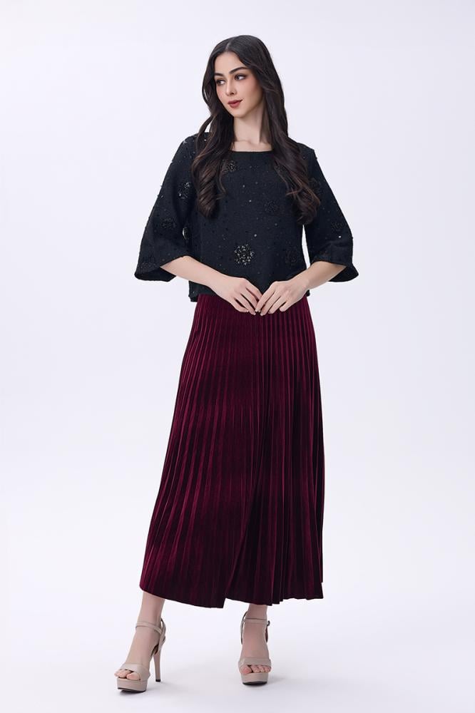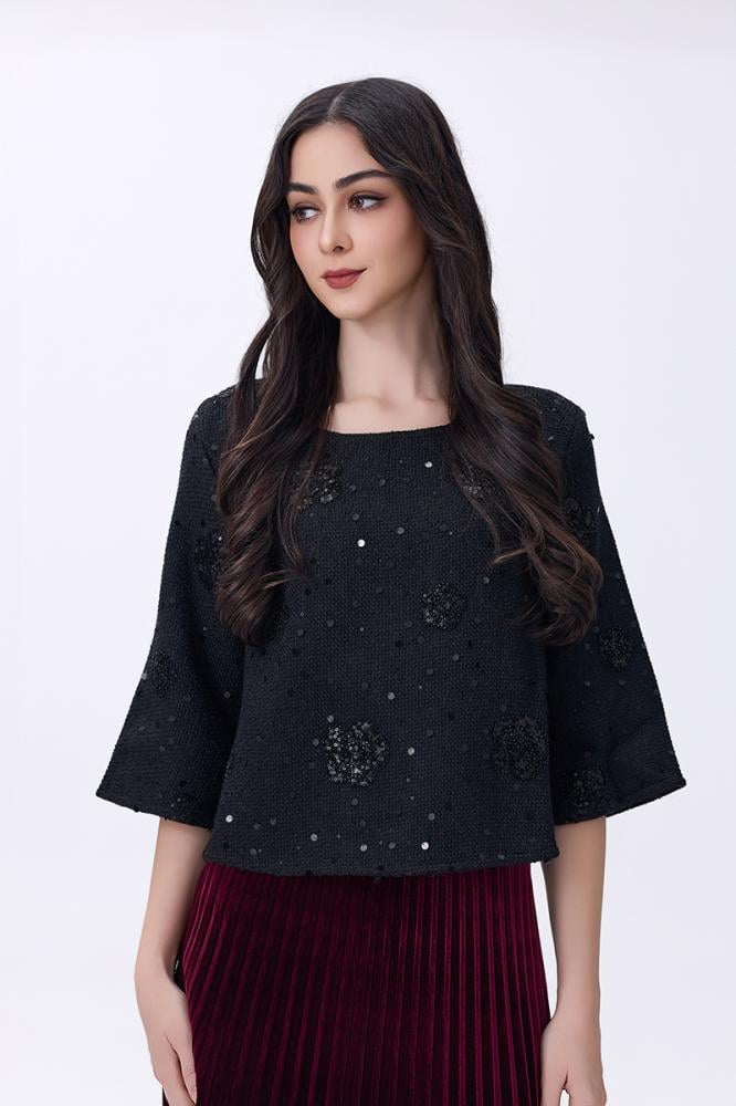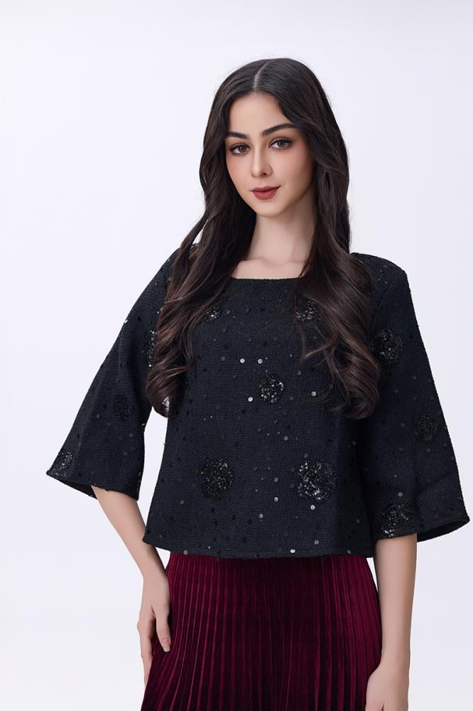 بلوزة أسود بتطريز ناعم ولمسة براقة