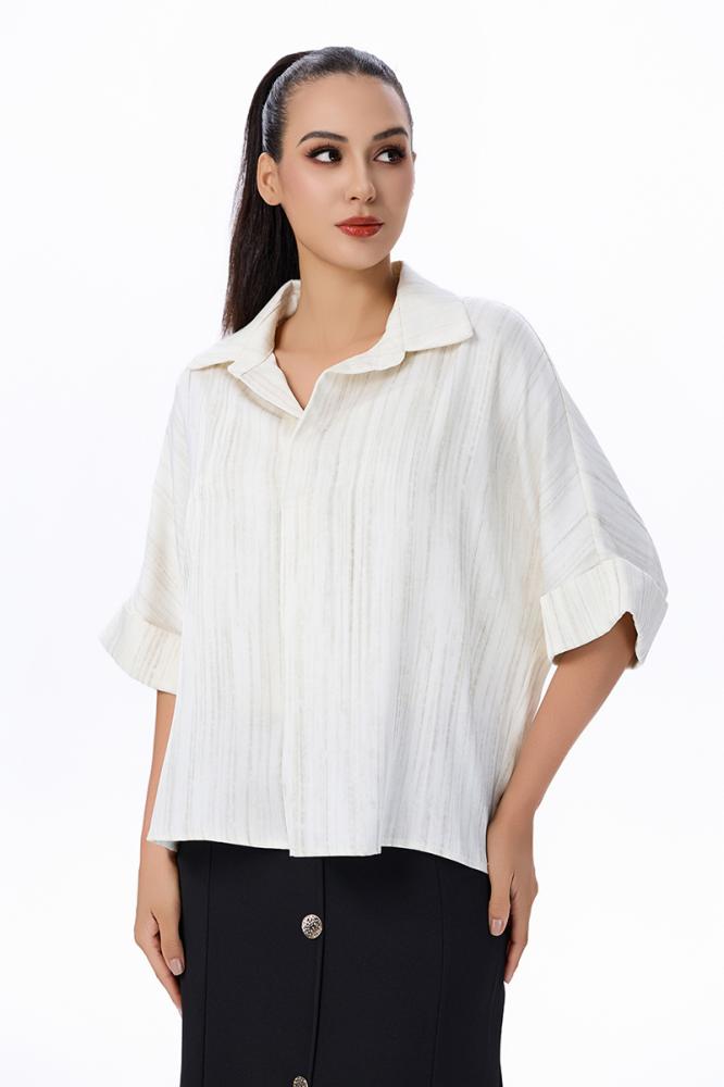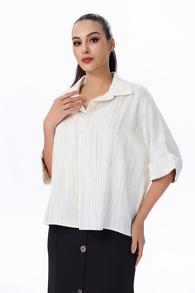 بلوزة أوف وايت واسعة بخطوط ناعمة – أناقة يومية بلمسة مريحة
