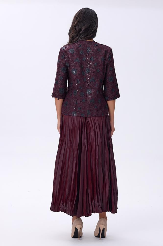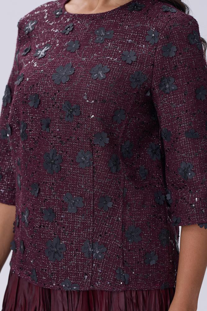 بلوزة بورغندي بتطريز ناعم ولمسة براقة
