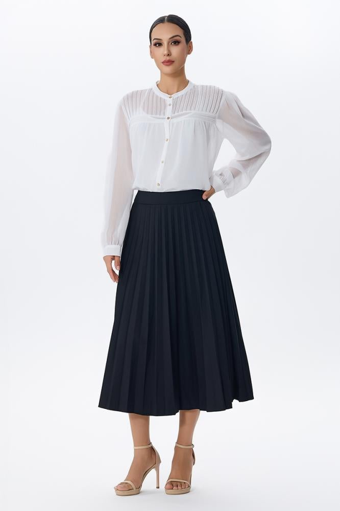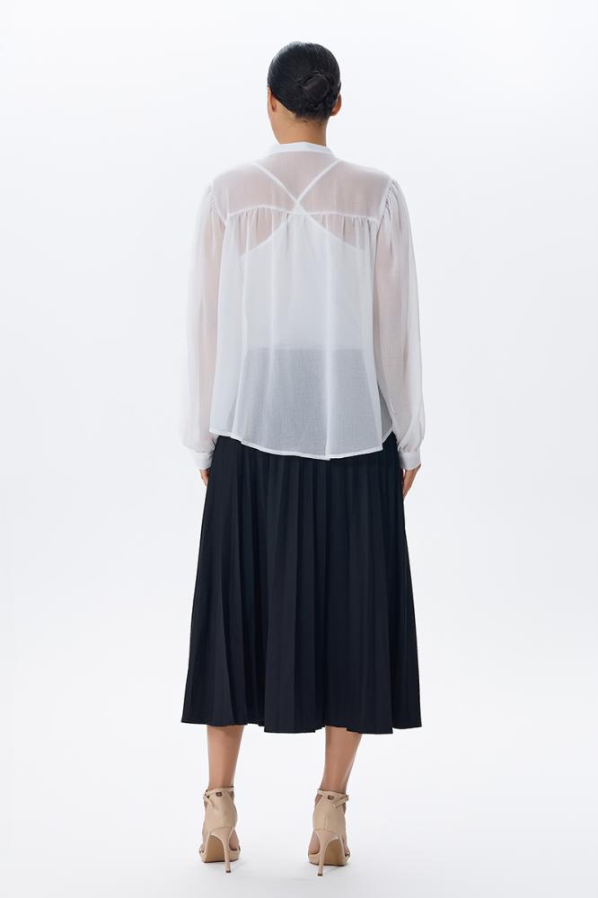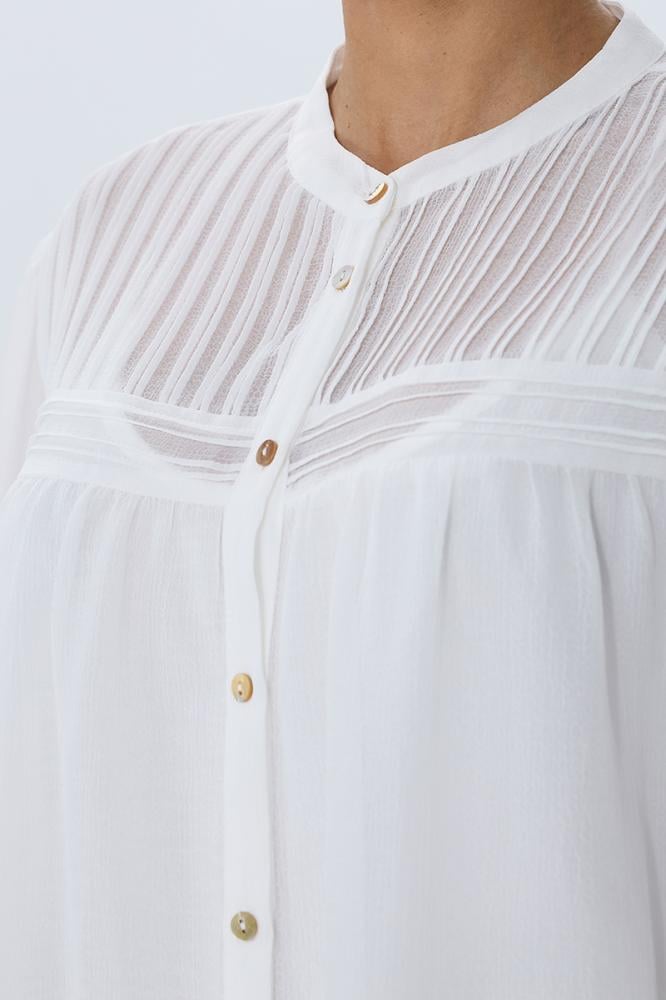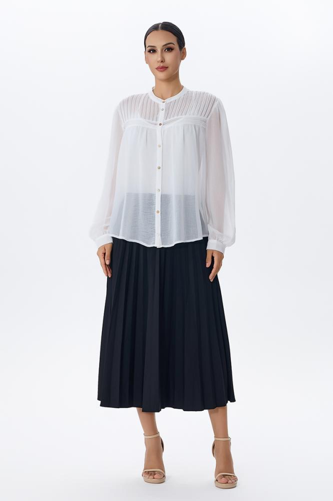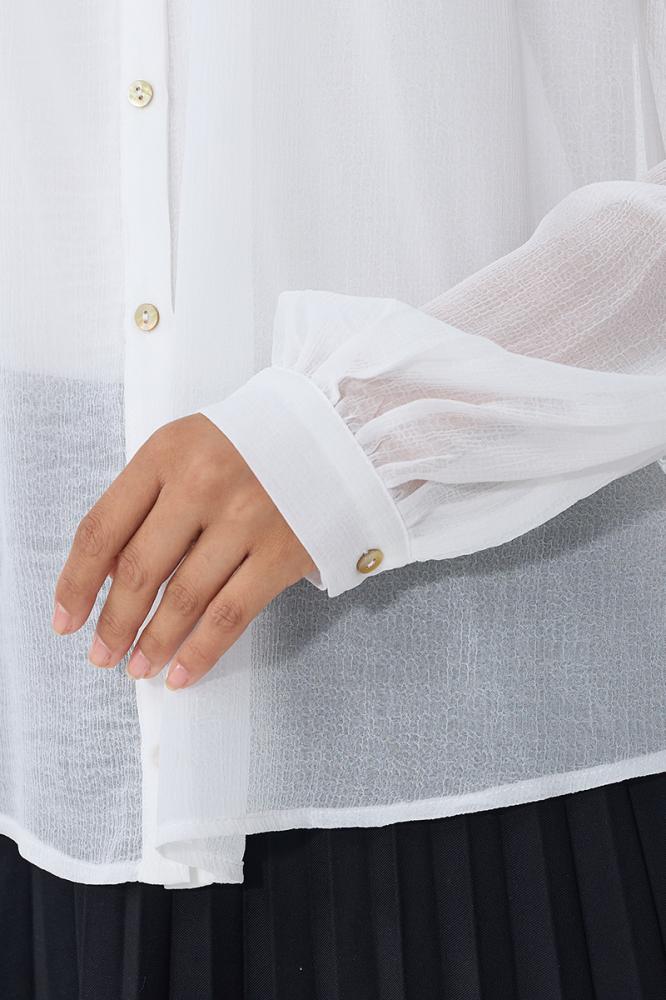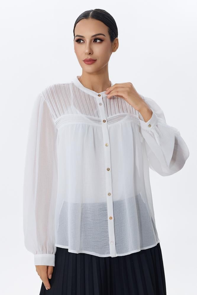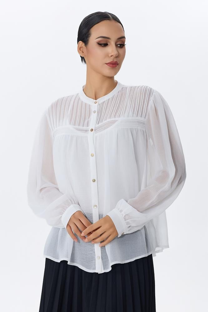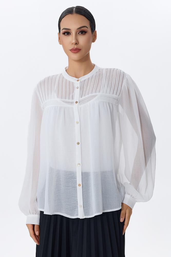 بلوزة بيضاء شفافة بتفاصيل كسرات – لمسة أنثوية حالمة