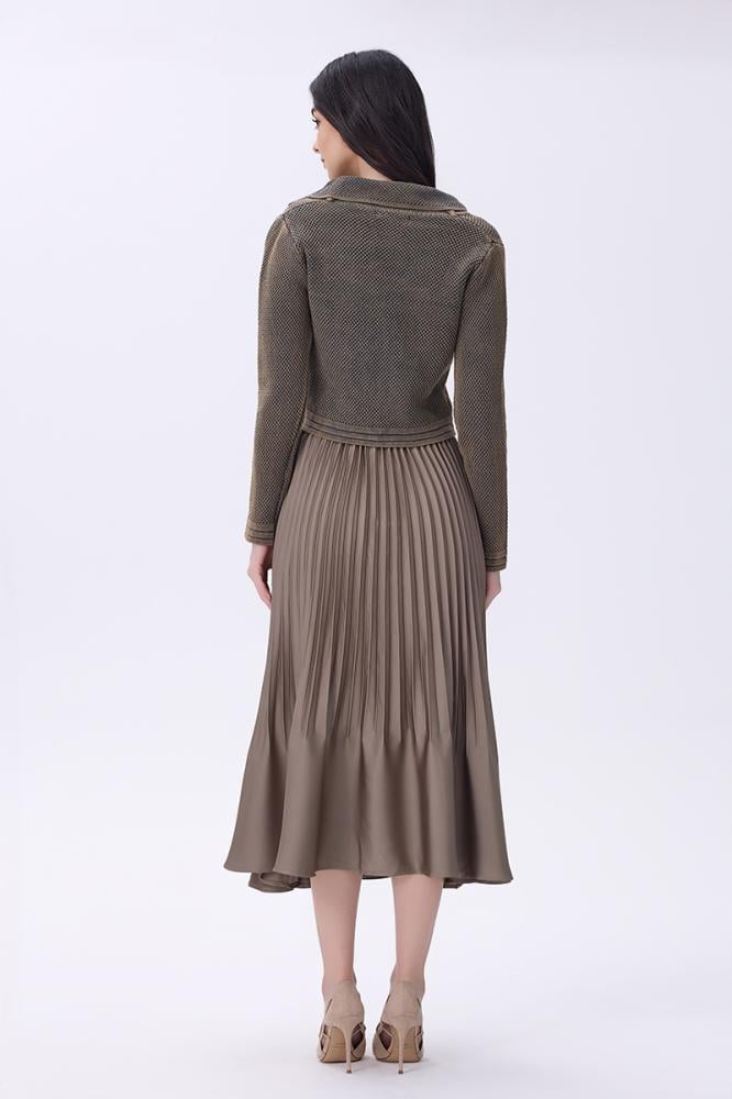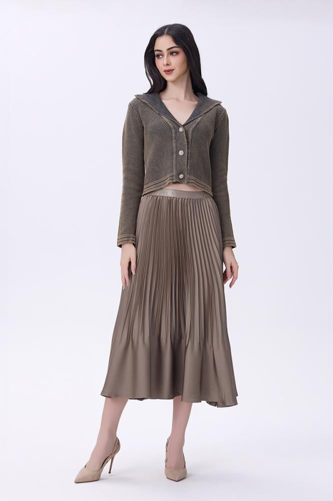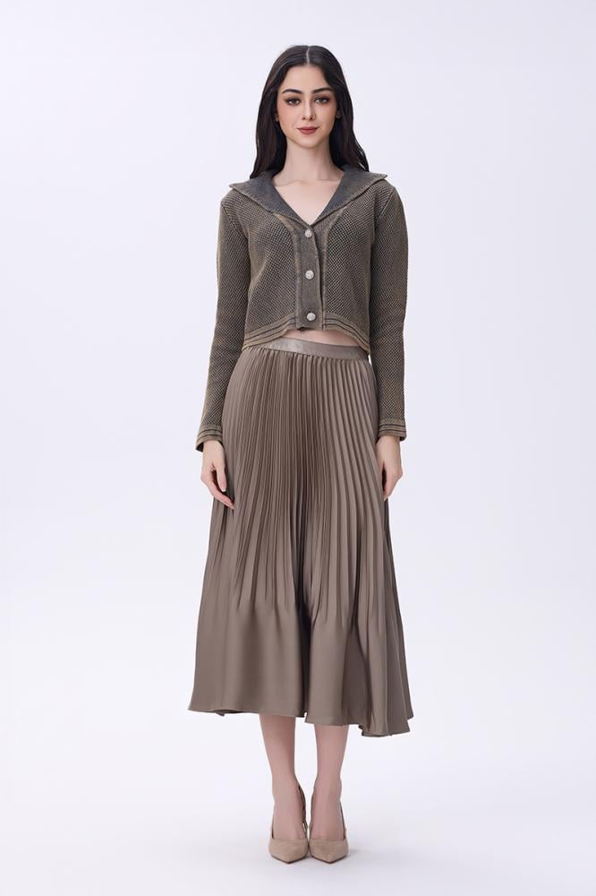 نسّقيها مع تنورة بليسيه بنفس الدرجة أو بنطلون خصر عالٍ لإطلالة متكاملة تناسب العمل أو اللقاءات المسائية الأنيقة.