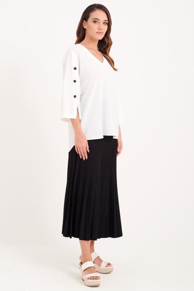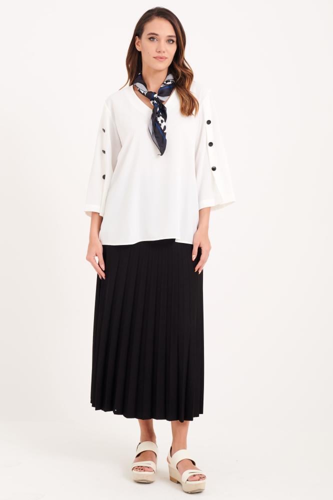 بلوزة ساتان بقصة فضفاضة بتصميم كلاسيكي أنيق مع لمسة جماليه بأزارير على الأكمام
