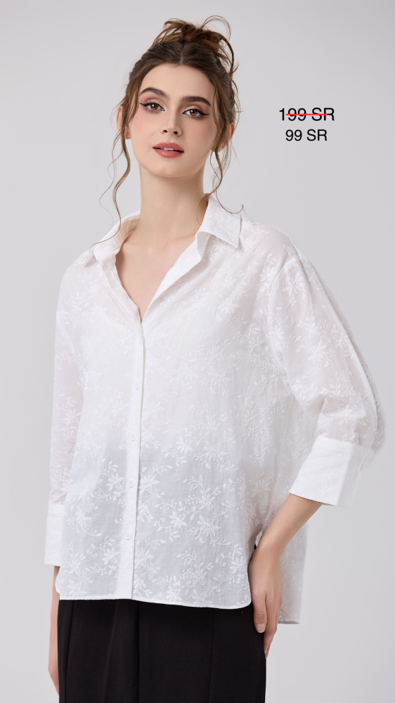 بلوزة قطن مع تطريز اوف وايت بقصة كلاسيكية مريحة
