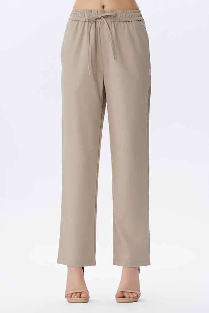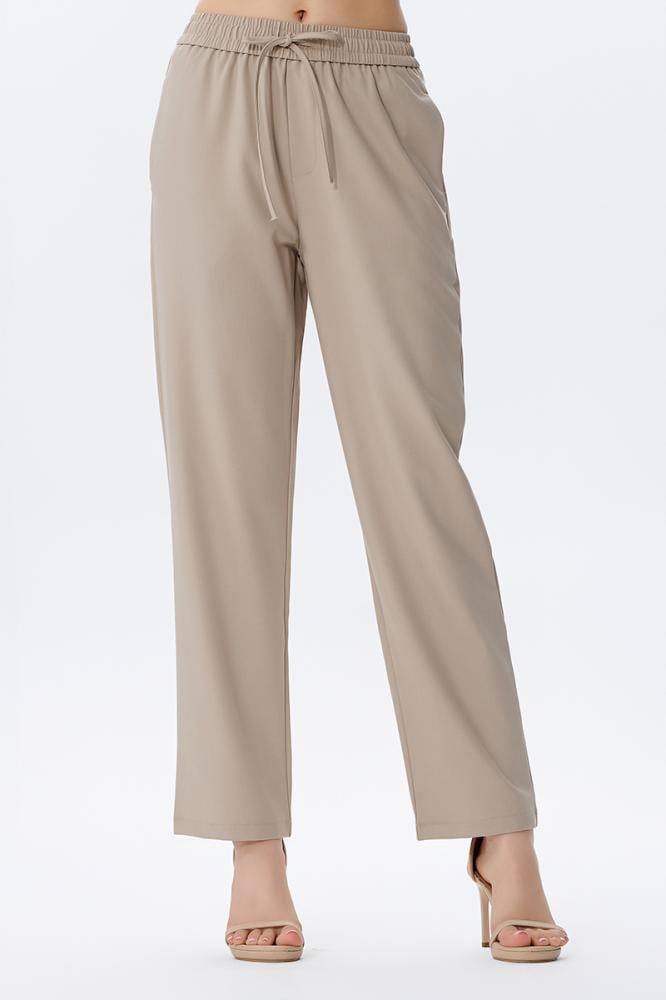 احصلي على الراحة والأناقة في آنٍ واحد مع هذا البنطال العملي المصمم بقصة واسعة وانسيابية. خصره المطاطي مع الرباط يضمن ملاءمة مثالية، بينما يضفي اللون البيج الرملي لمسة هادئة وعصرية على إطلالتك اليومية.