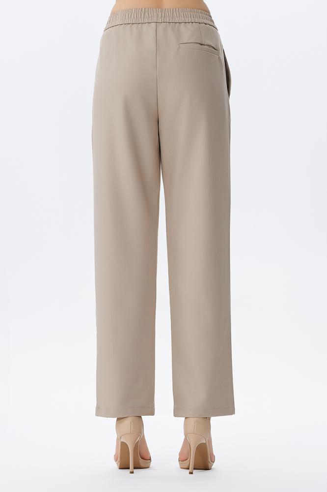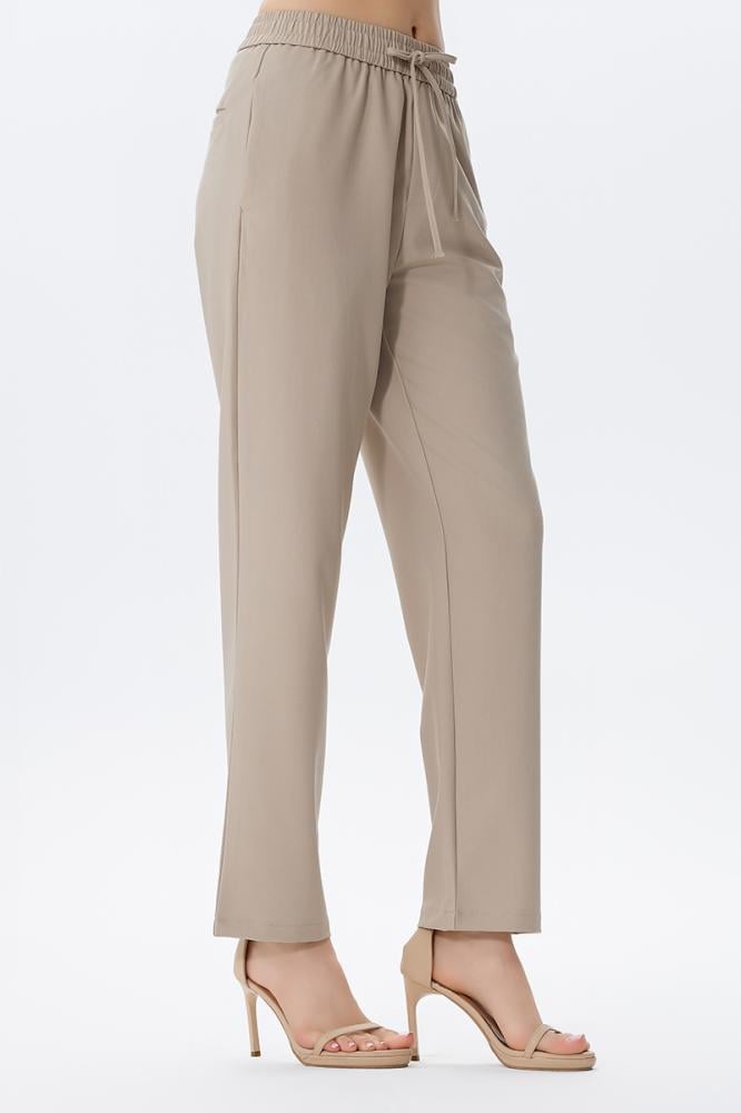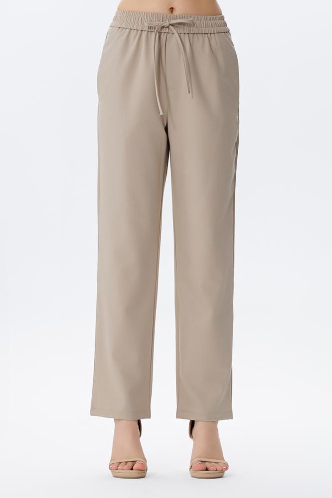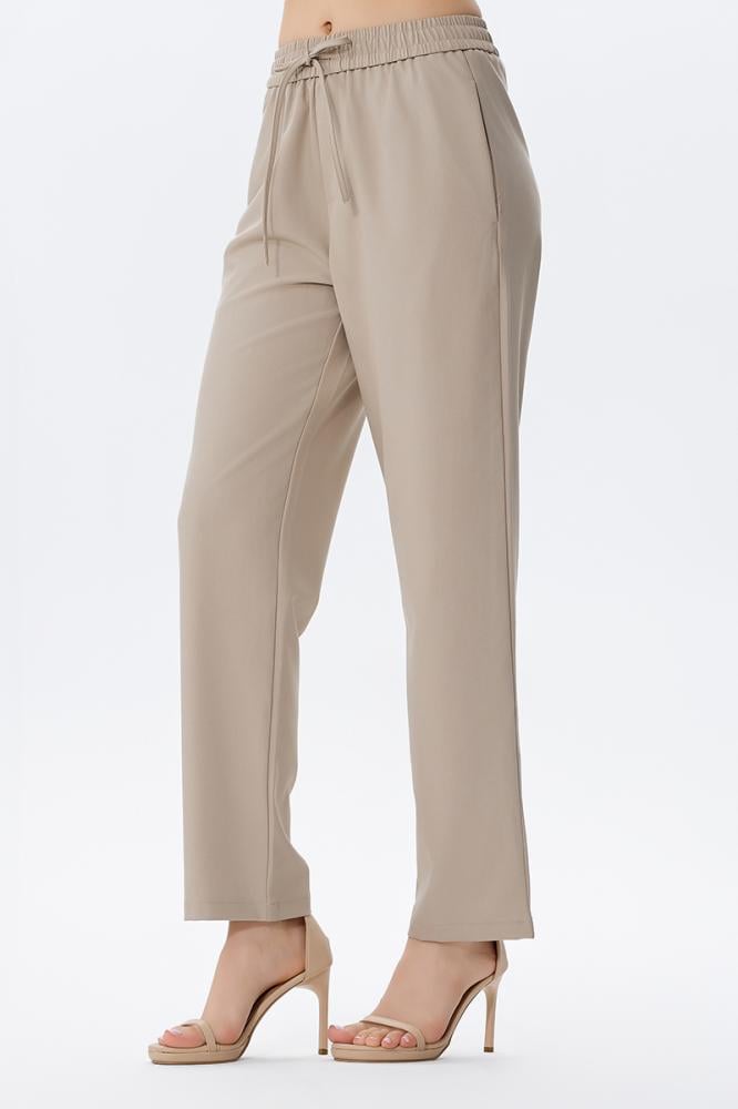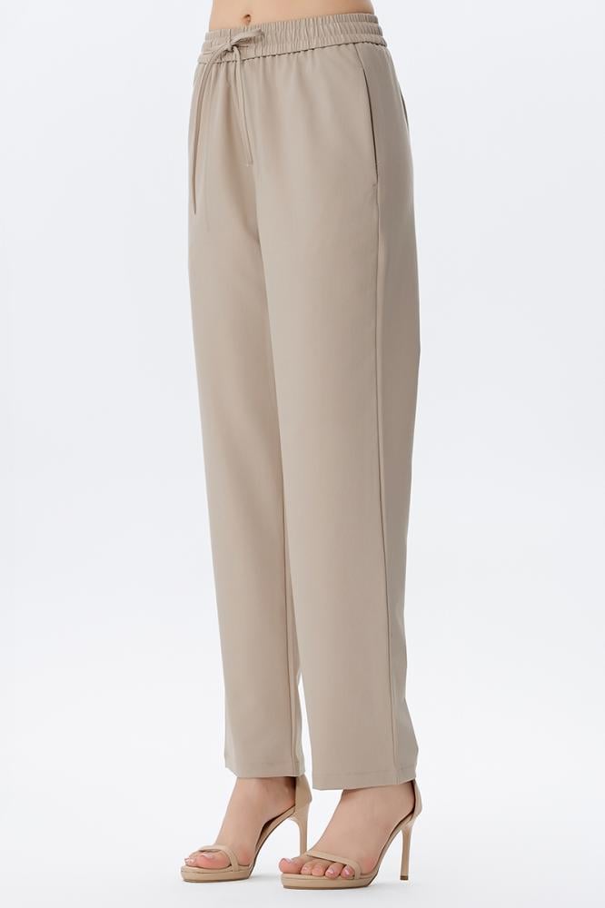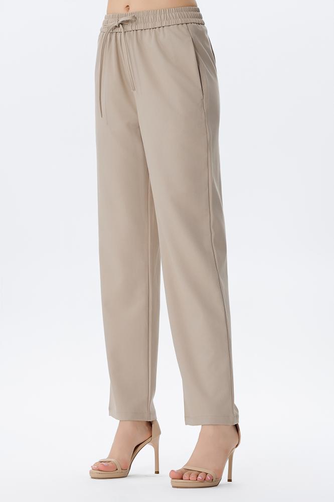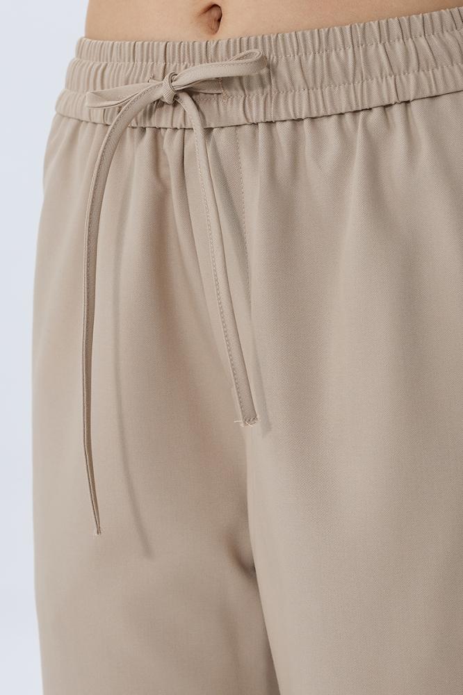 بنطال واسع بخصر مطاطي ورباط بلون بيج رملي
