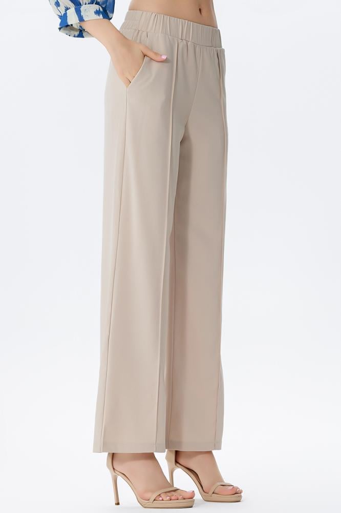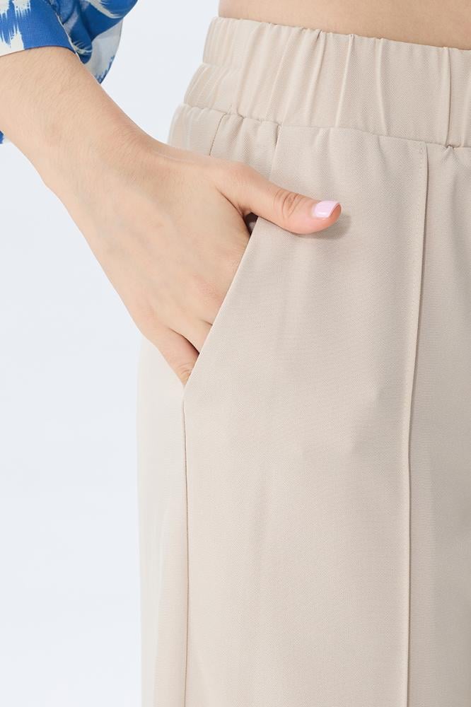 بنطلون بيج واسع بخصر مطاطي – أناقة يومية بخطوط انسيابية