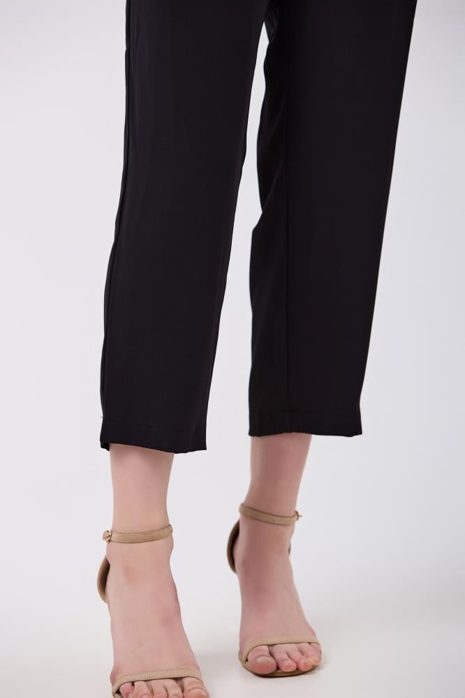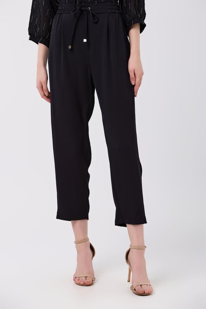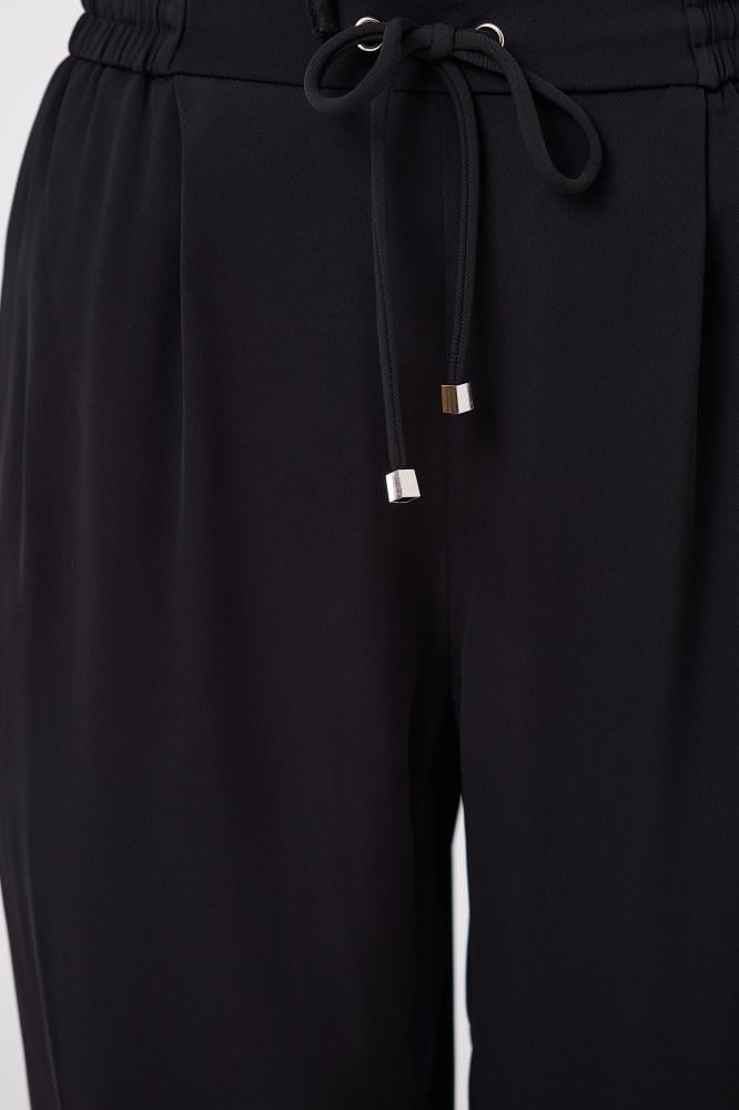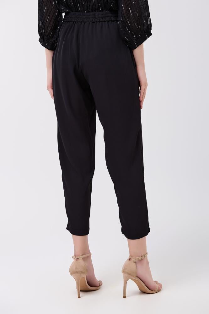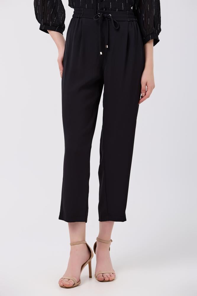 بنطلون قطن أسود مع خصر مغاط برباط بقصة مريحة