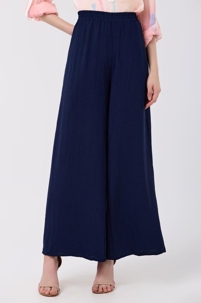 بنطلون كريب ناعم كحلي بقصة فضفاضة مريحة