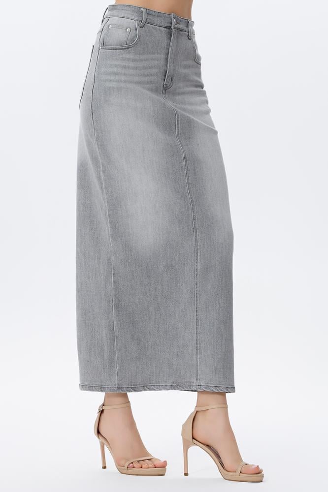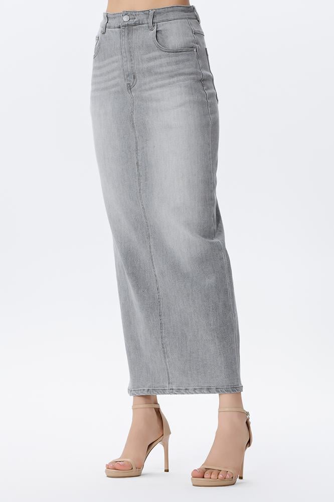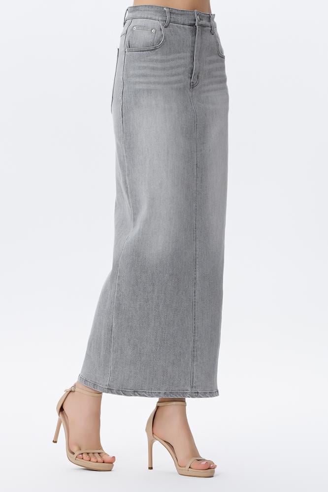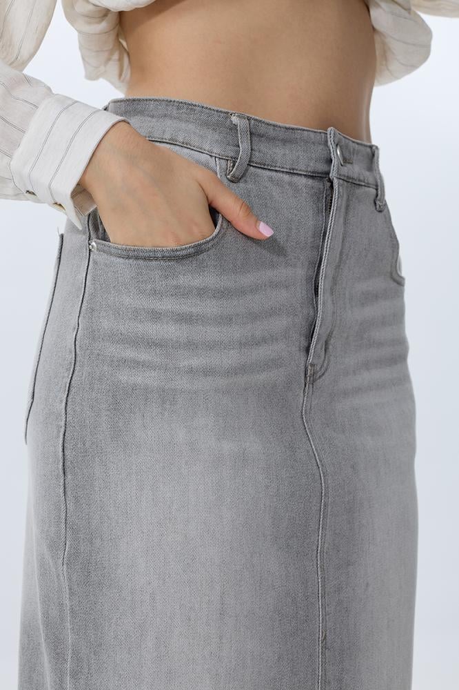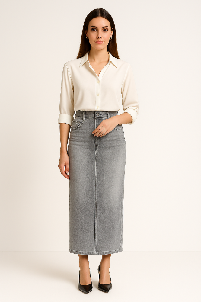 تنورة جينز طويلة بخصر مرتفع – رمادي عصري