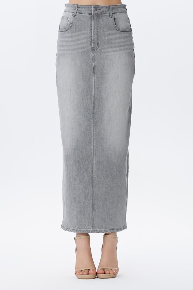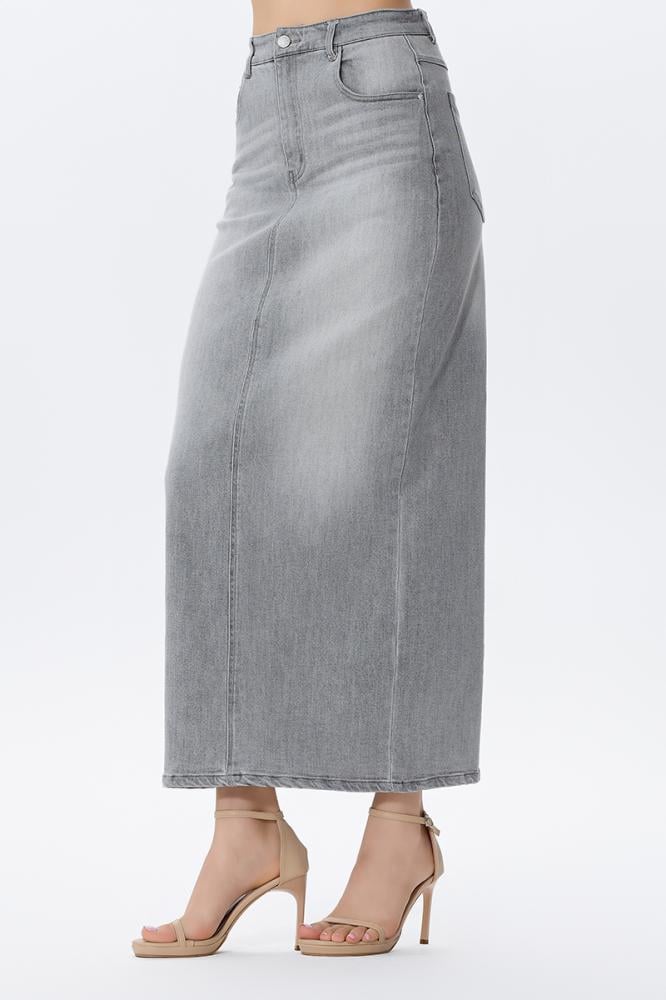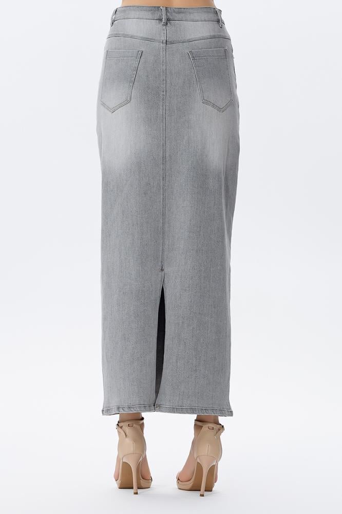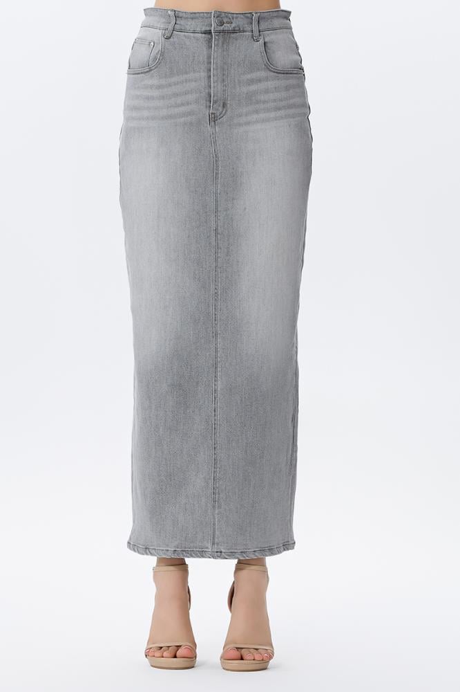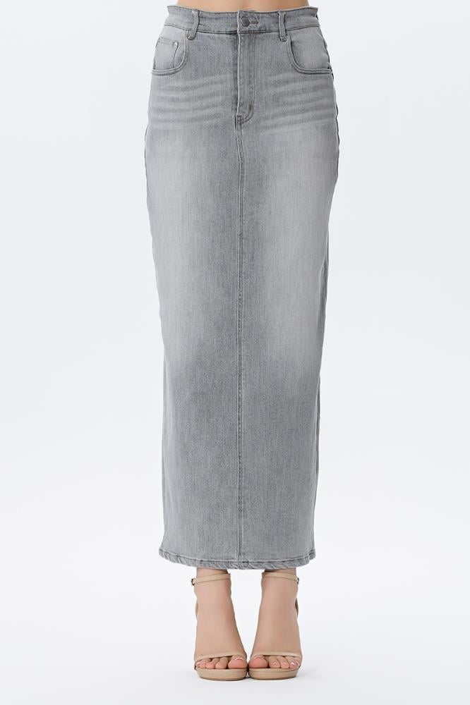 تنورة جينز طويلة بخصر مرتفع – رمادي عصري