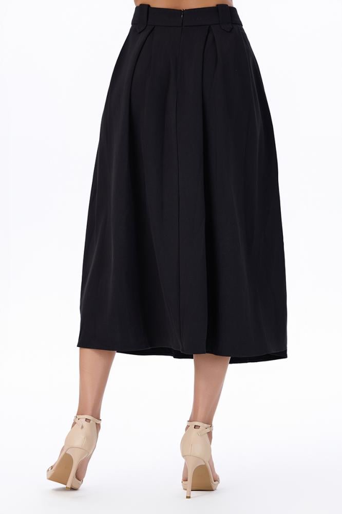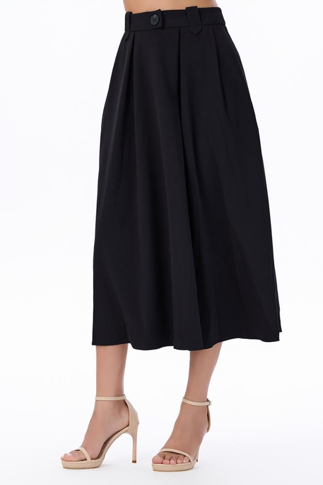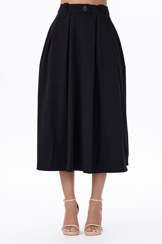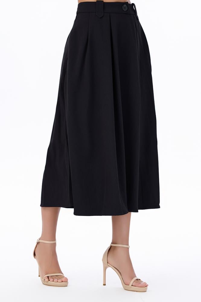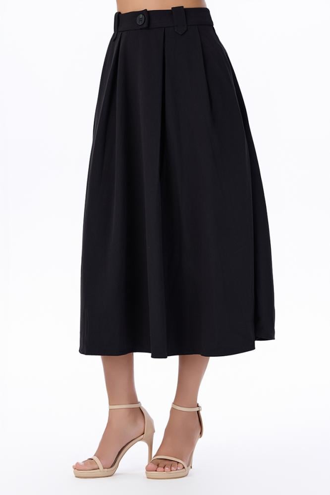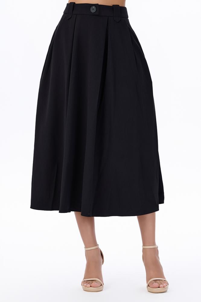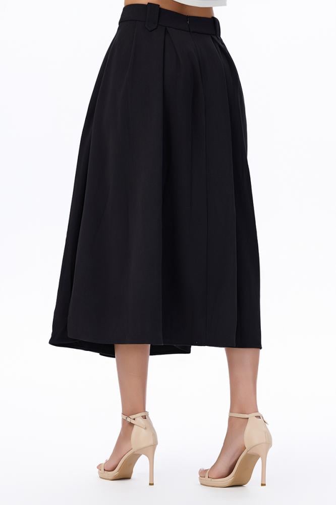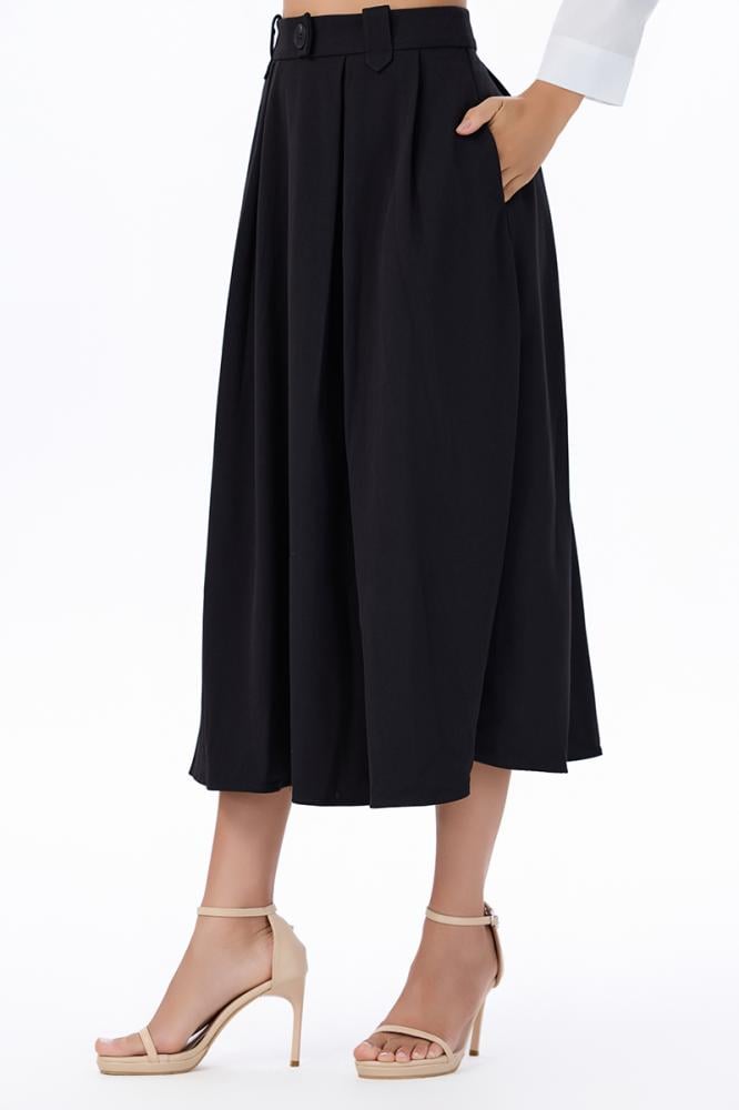 تنورة سوداء واسعة بكسرات – لمسة أناقة وانسيابية مثالية