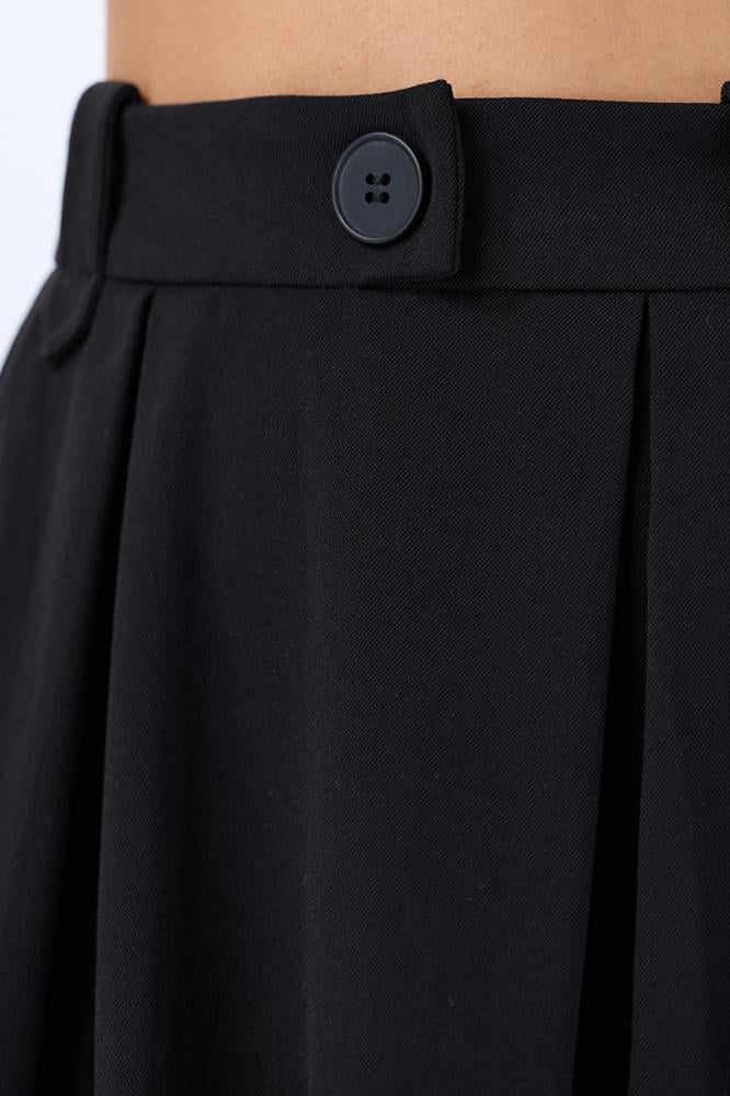 استمتعي بإطلالة مريحة وعصرية مع هذه التنورة الواسعة المصممة بكسرات أمامية ناعمة تمنحها حركة وانسيابية أنثوية. بلون أسود أنيق يناسب جميع الأوقات والتنسيقات.