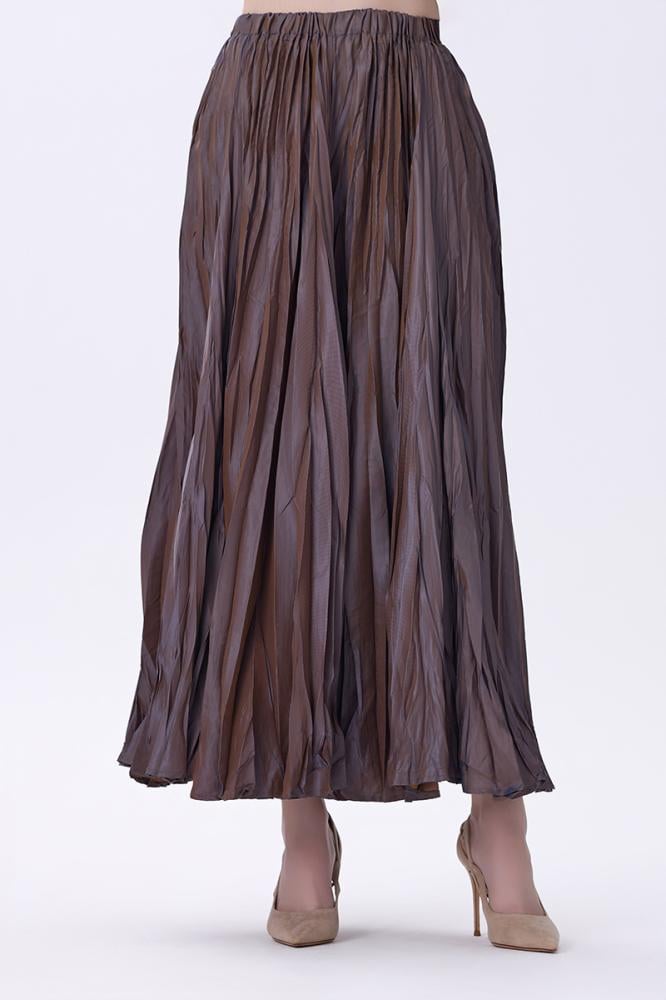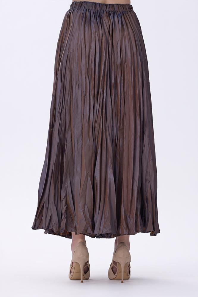 تنورة بليسيه حريرية بتصميم فاخر يضفي لمسة درامية وأنيقة على إطلالتك. خامة خفيفة بلمعة ناعمة تمنحها حركة انسيابية جذابة مع كل خطوة، لتناسب السهرات أو الإطلالات المسائية الراقية.