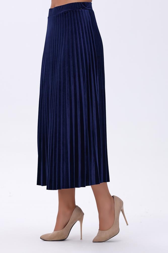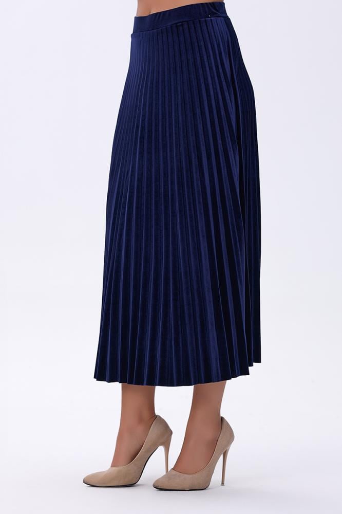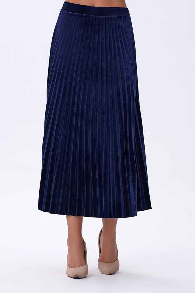 تنورة مخمل بليسيه بلون ازرق فاخر