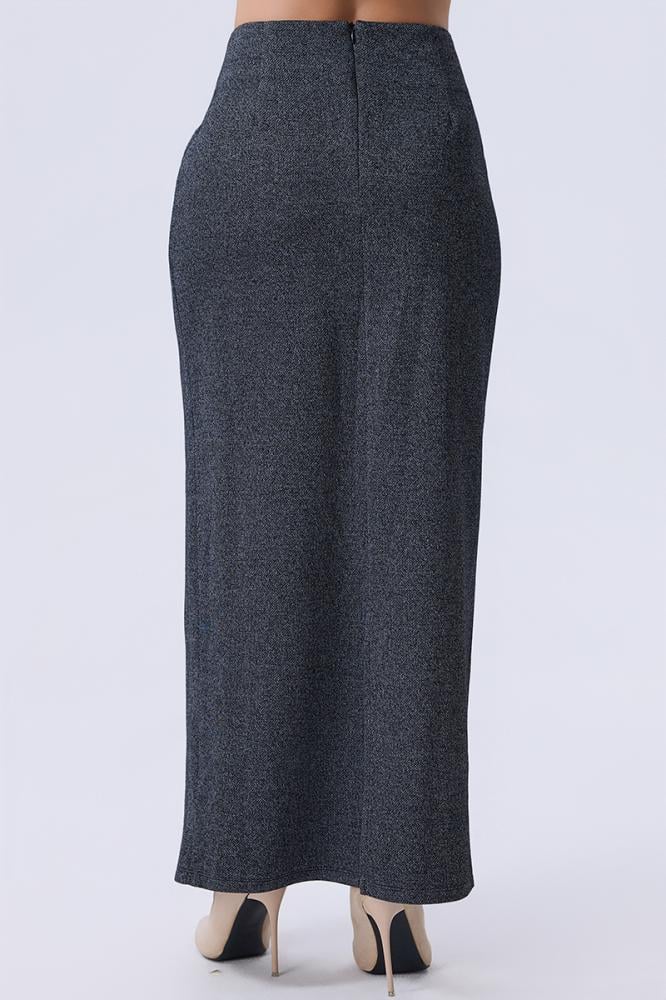 تميزي بإطلالة عملية وأنيقة مع هذه التنورة المستقيمة الطويلة باللون الرمادي الداكن. بتصميم بسيط وراقي، تمنحك حرية في تنسيقها مع مختلف القطع سواء للقميص الرسمي أو البليزر لإطلالة عمل متكاملة، أو مع بلوزة أنثوية للخروج اليومي. قماشها الانسيابي يعطي راحة وأناقة في نفس الوقت.