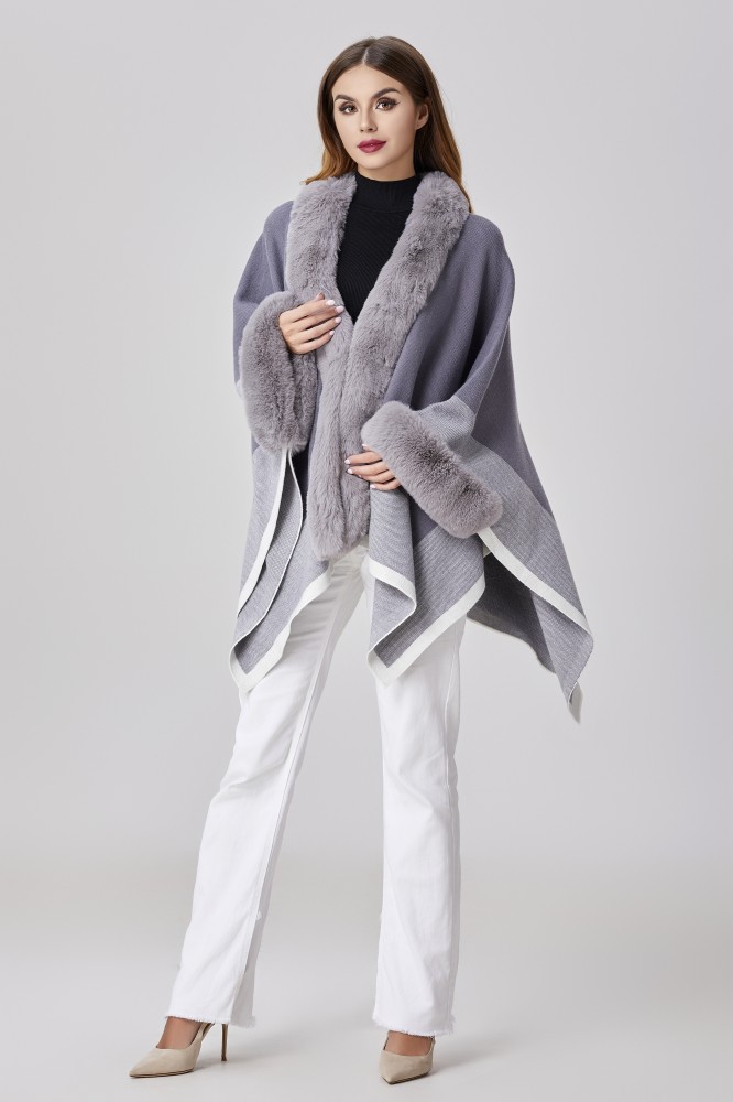 جاكيت صوف ناعم رصاي مع الفرو على الياقة وعلى اطراف الاكمام