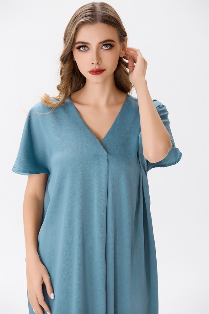 بلونها الأزرق البترولي، تعتبر هذه الجلابية خيارًا رائعًا لتحقيق مزيج مثالي بين الأناقة والراحة في إطلالة واحدة.