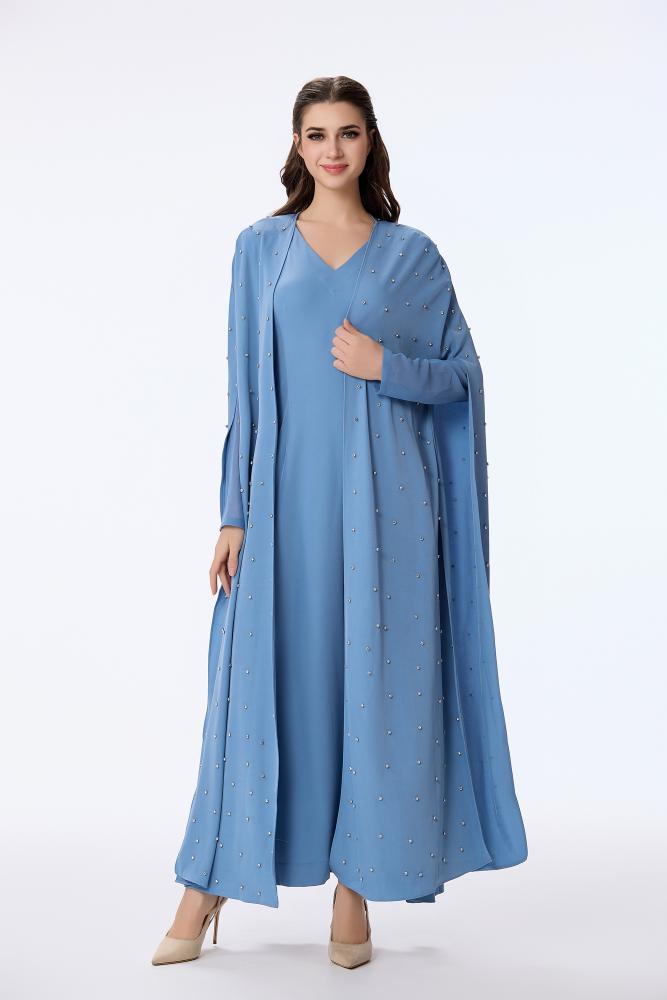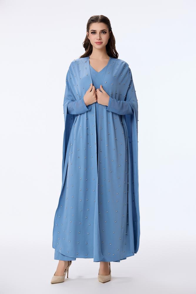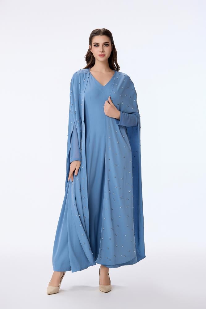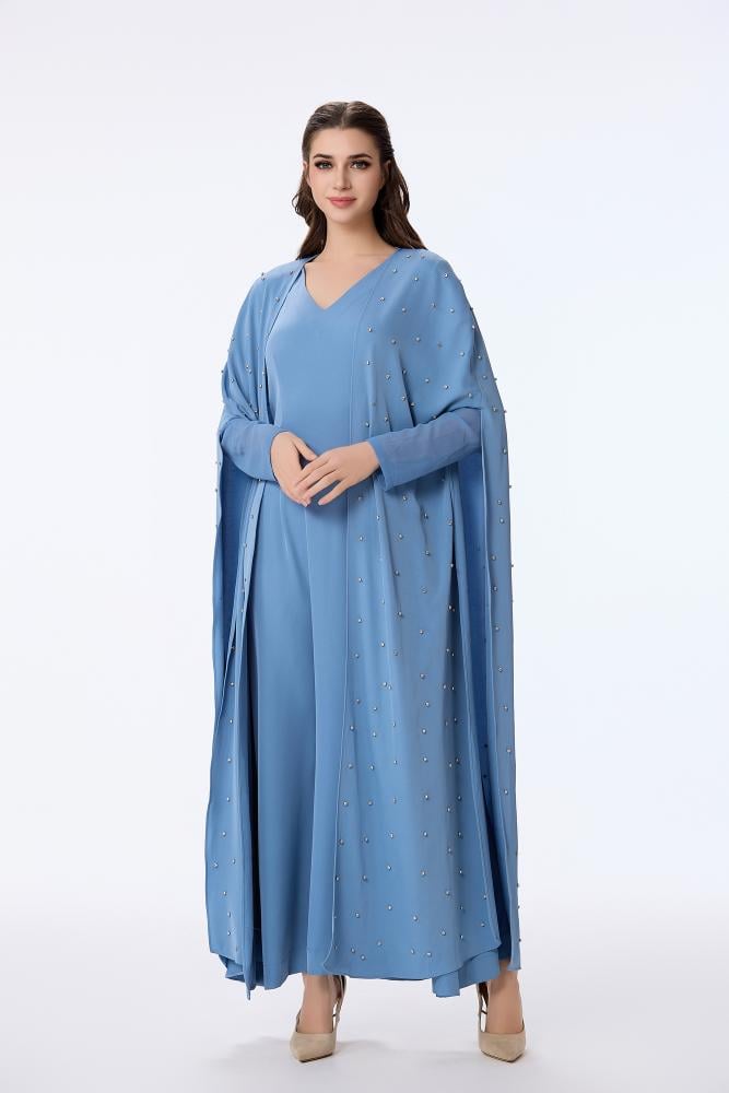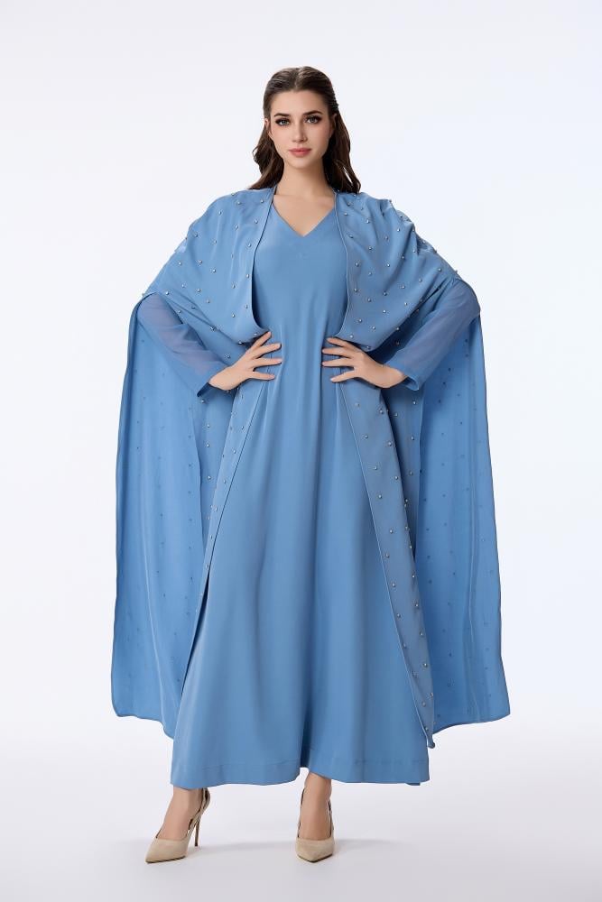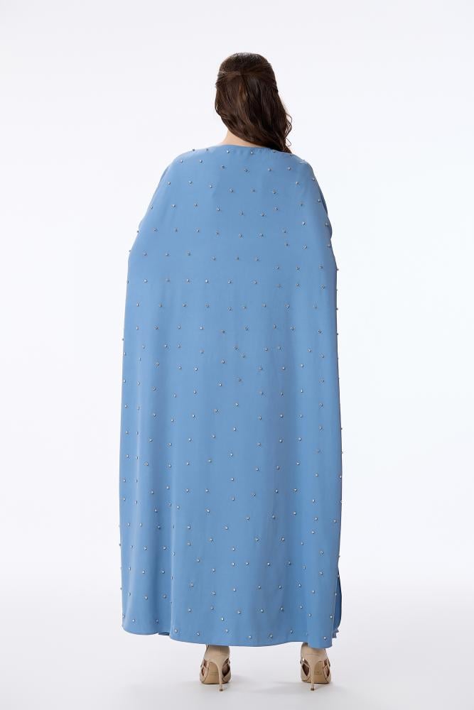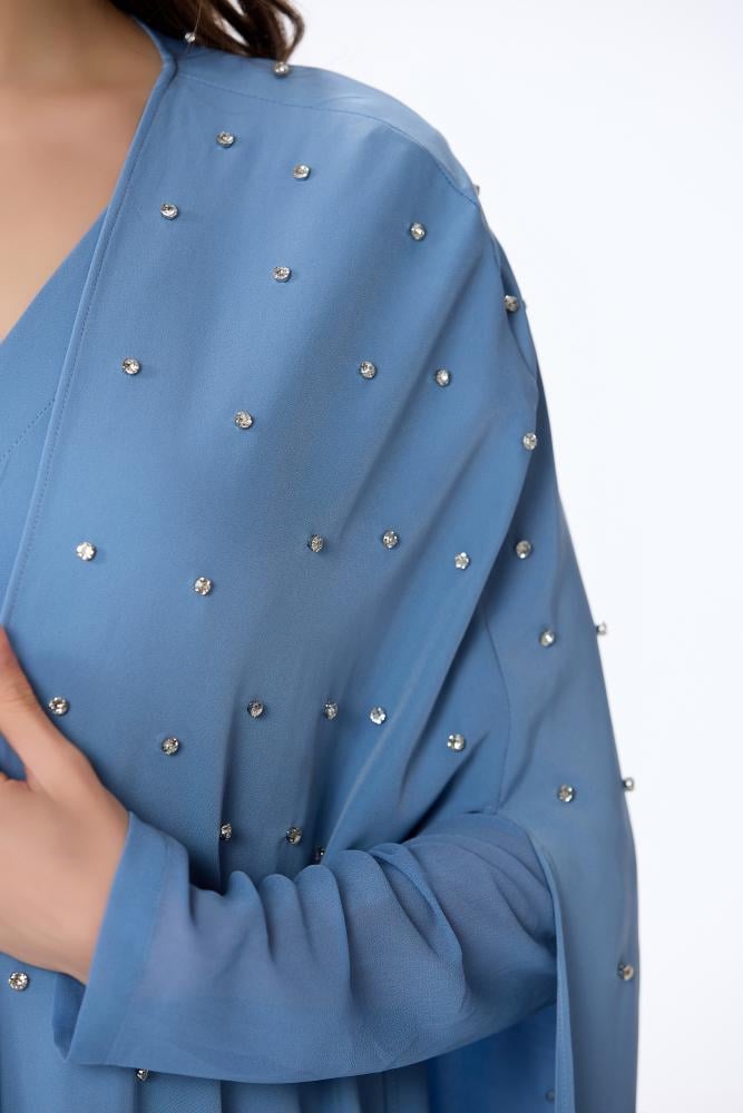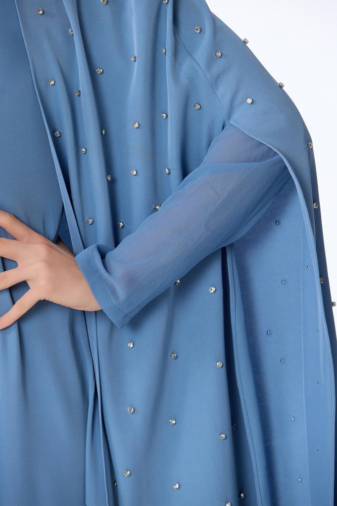 جلابية كريب سماوي بقصة مريحة مع كايب شيفون مزين بالكريستال