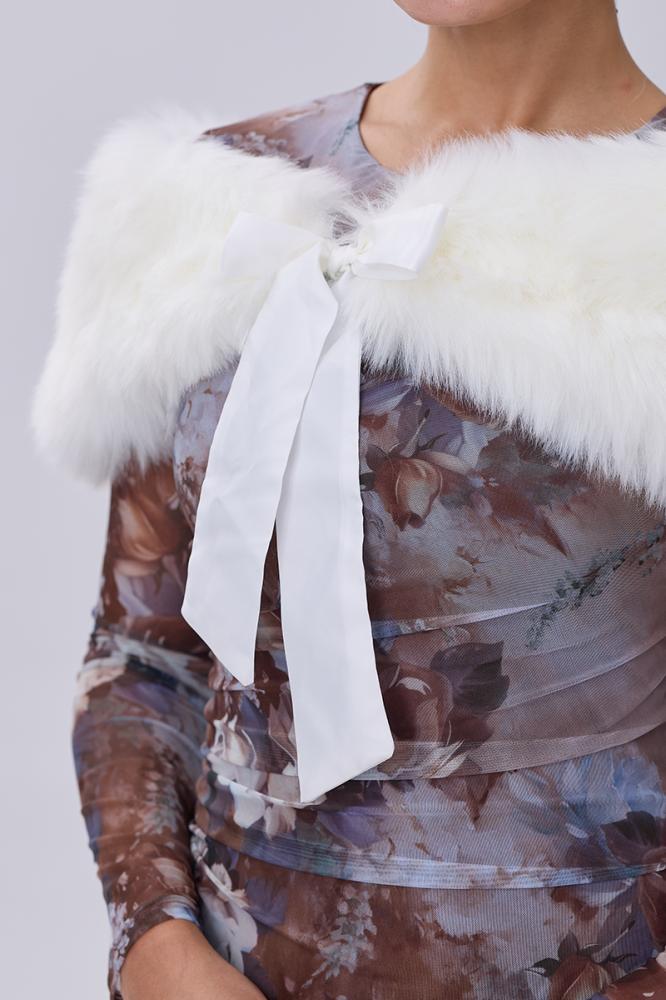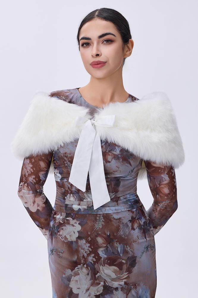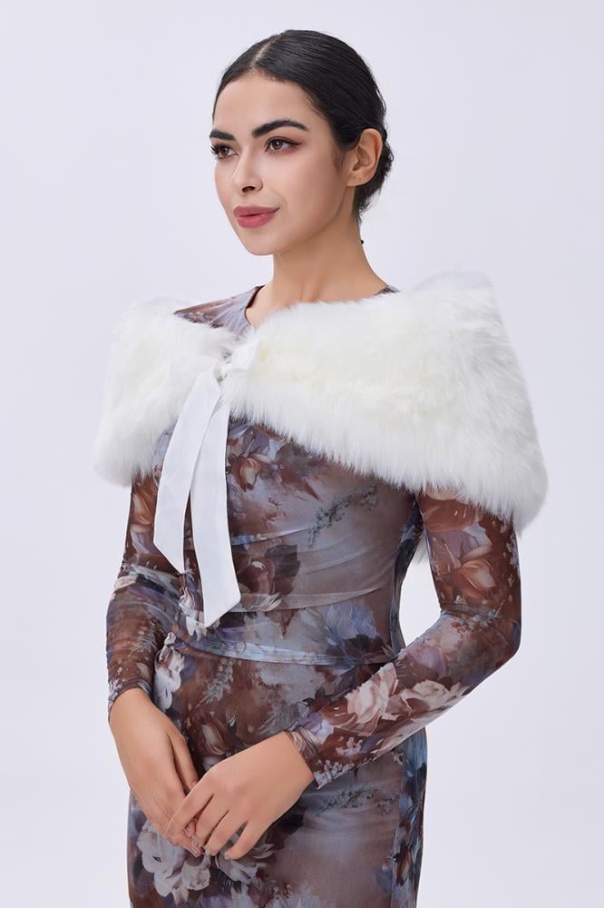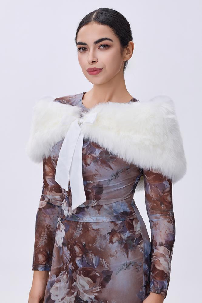 شال أنيق يضيف لمسة من الدفء والفخامة لإطلالتك الشتوية. يتميز بفرو أبيض فاخر بملمس ناعم ومظهر غني، مزين بربطة ساتان أنثوية في المنتصف لتمنحك لمسة من الرقي. تصميمه العصري يجعله قطعة مثالية لتنسيقها مع الفساتين أو المعاطف في المناسبات المسائية أو الإطلالات الرسمية.