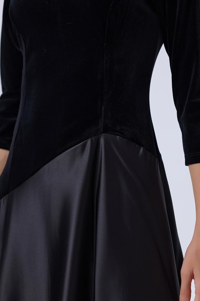 فستان أسود فاخر بقماش مخملي ولمسة ساتان