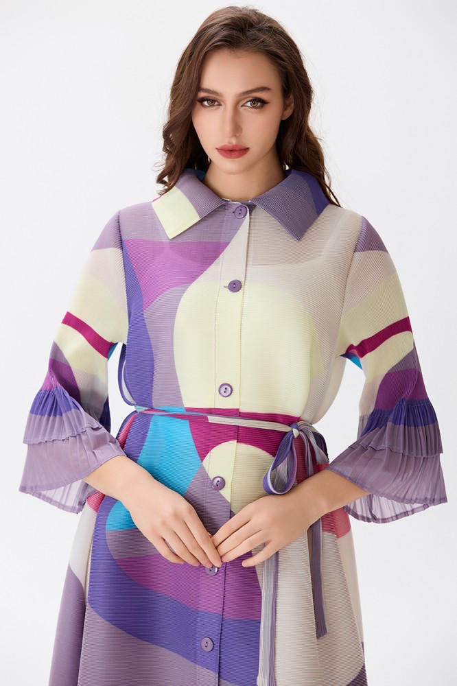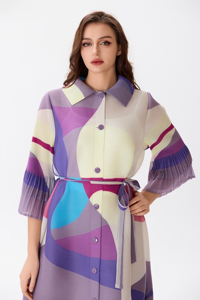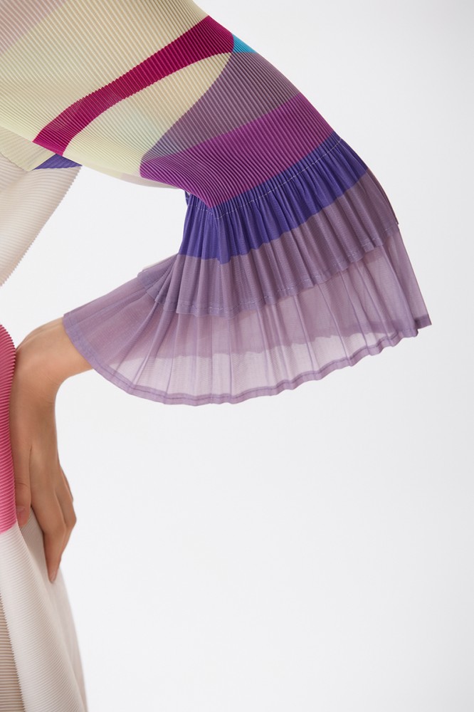 فستان بليسية متعدد الألوان مع اكمام بطبقات كشكش ورباط على الخصرالخامة بليسية : قابلة للتمددسماكة النسيج : خفيفة