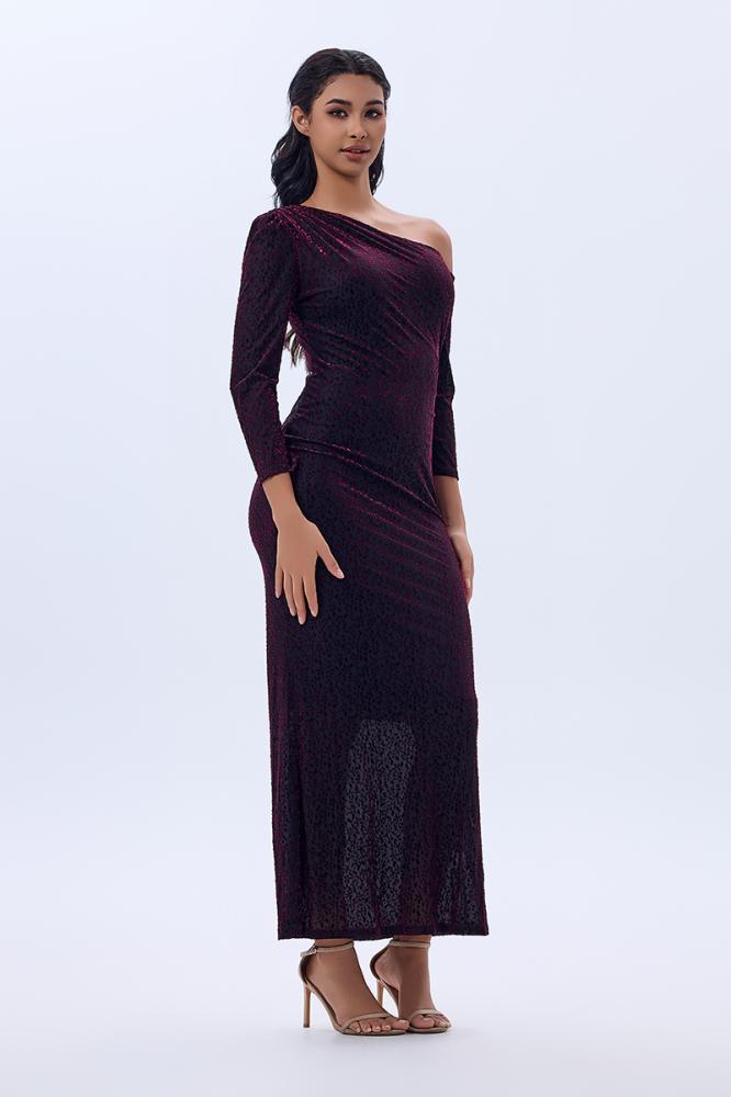 فستان تول بنقشة الفهد بقصة انثوية غنية بالثنيات مع كتف روماني واكمام طويلة