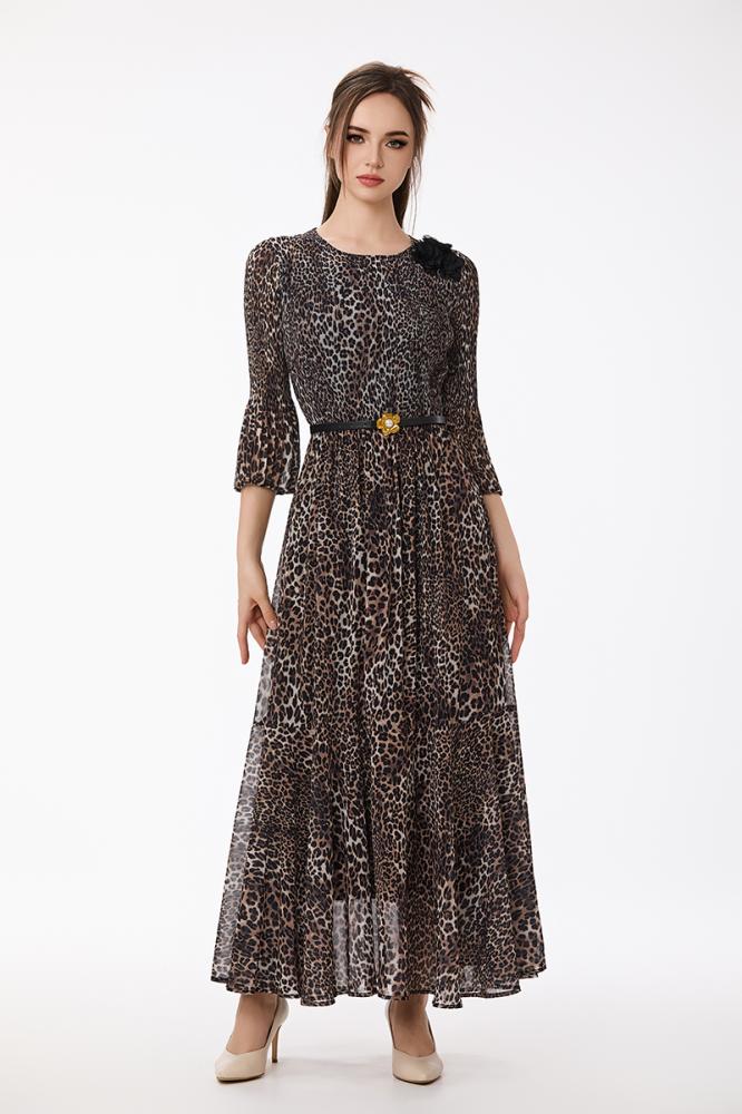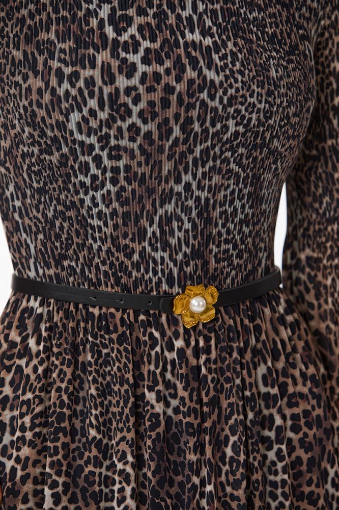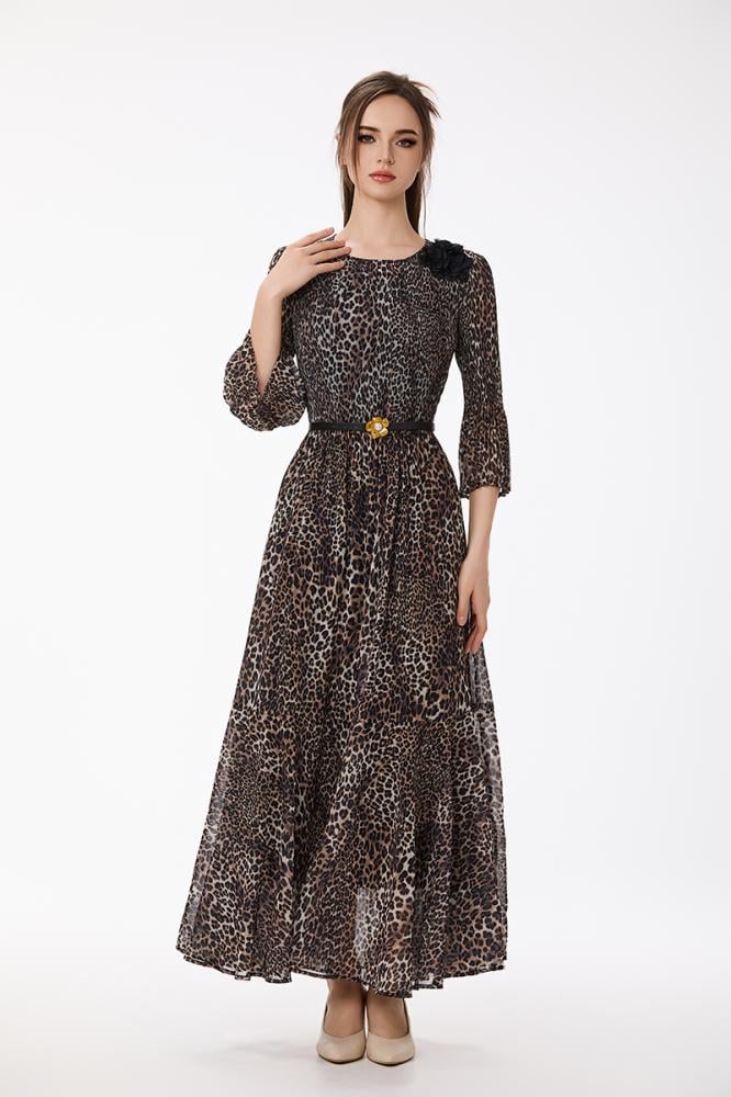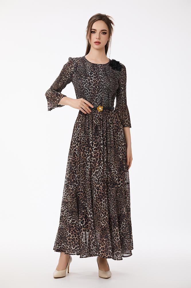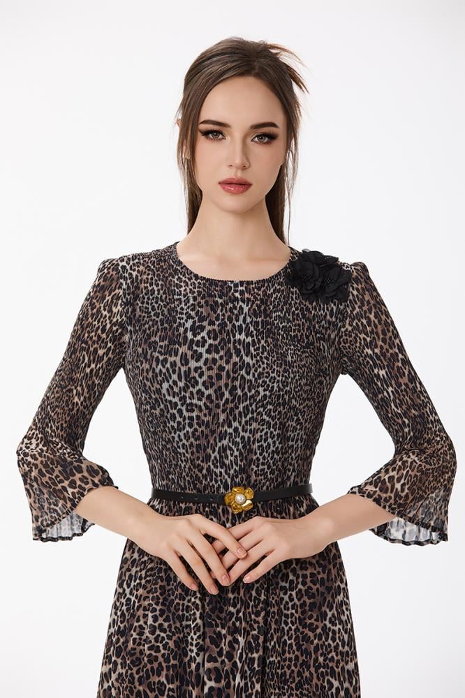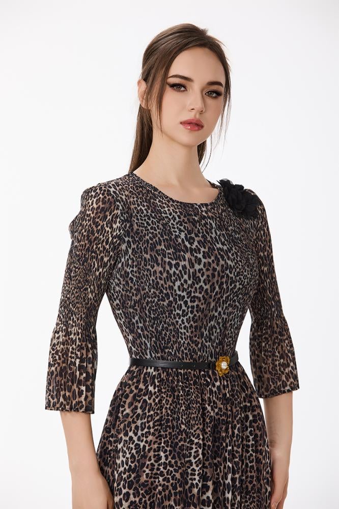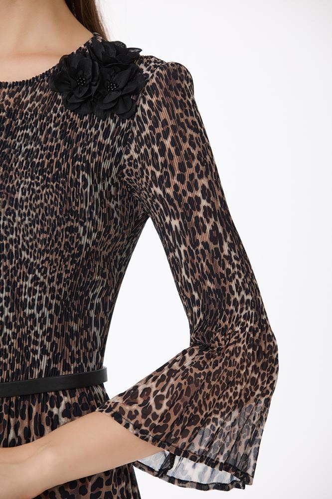 فستان شيفون بنقشة الفهد مع إكسسوار الوردة