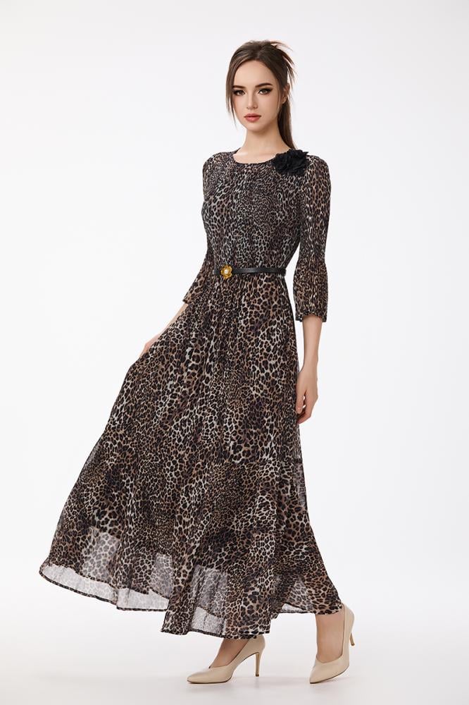 - الألوان والخامات: يأتي الفستان بنقشة الفهد الجذابة على قماش الشيفون الخفيف، مما يضيف لمسة من الجرأة والأنوثة. قماش الشيفون يضمن لك الراحة والحركة السلسة طوال اليوم.