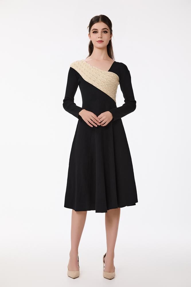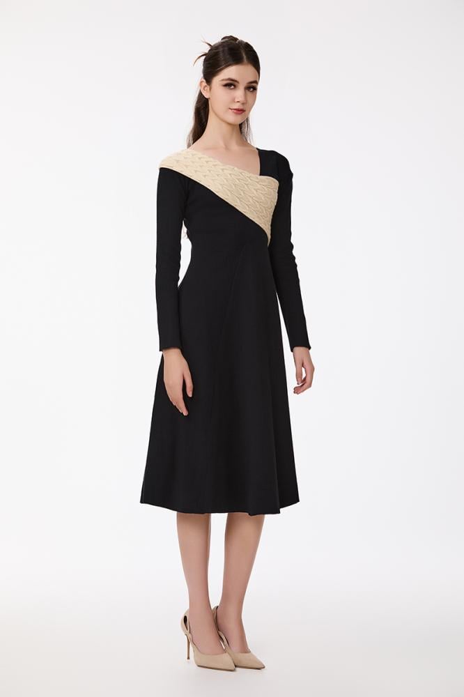 فستان صوف ناعم استرتش بون أسود