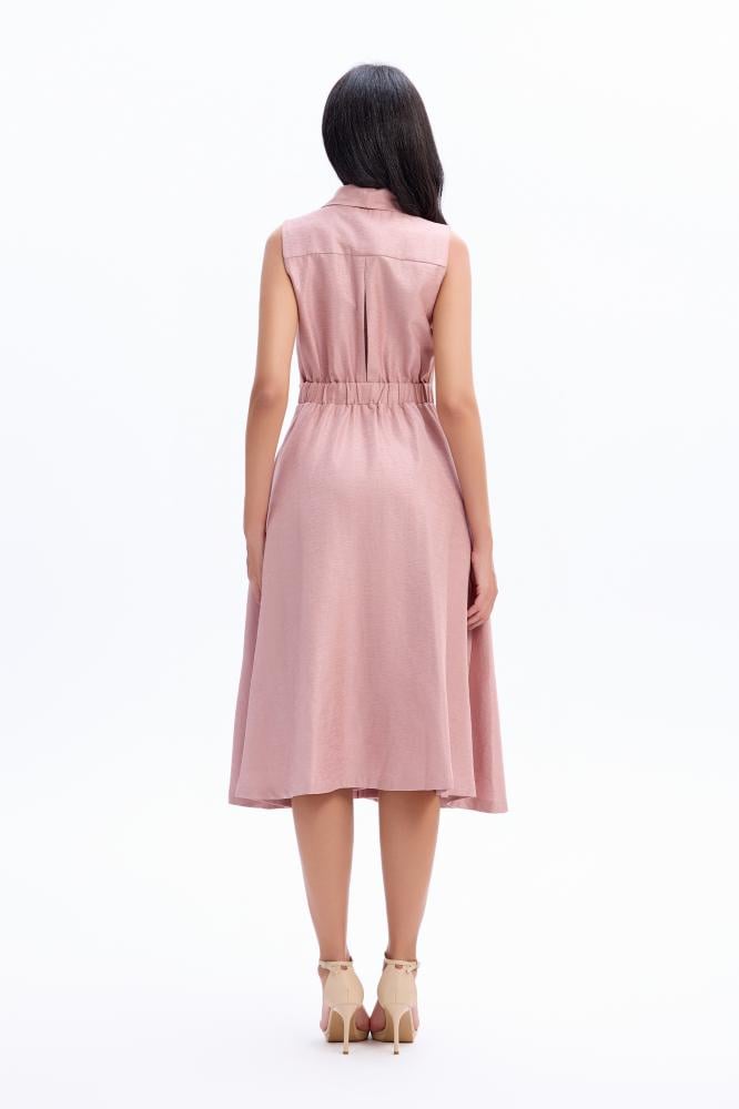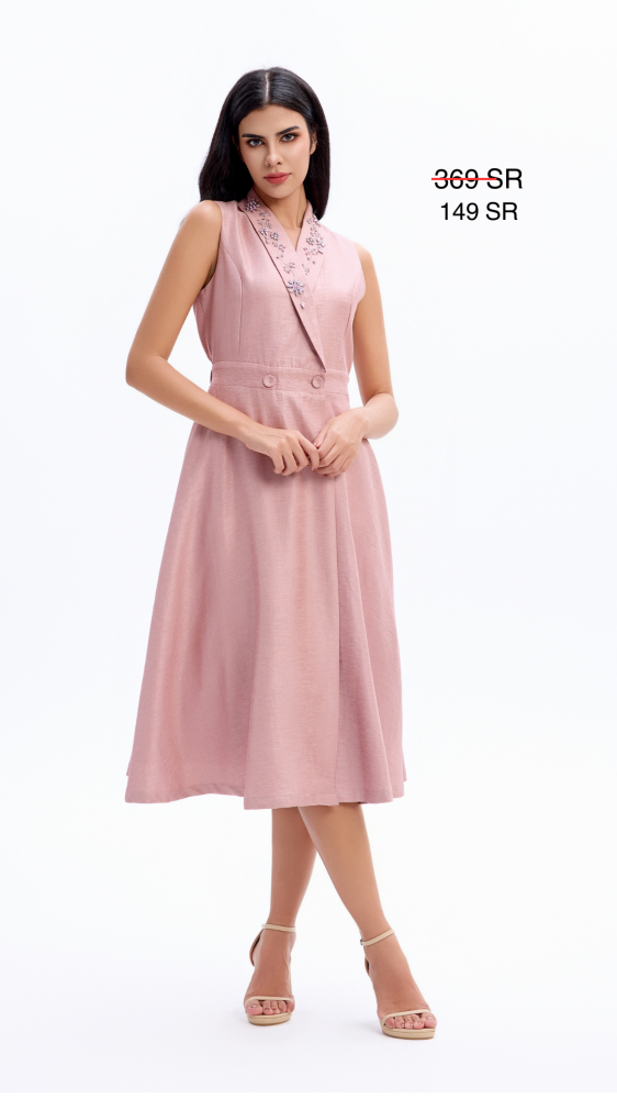 فستان ميدي وردي بلا أكمام بتطريز ناعم – لمسة أنثوية راقية