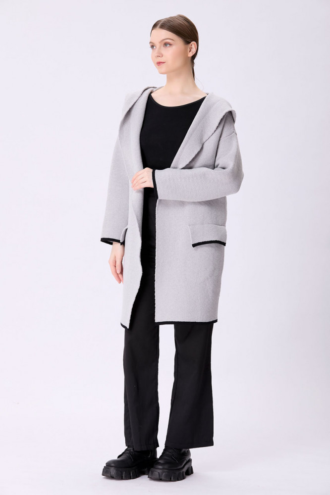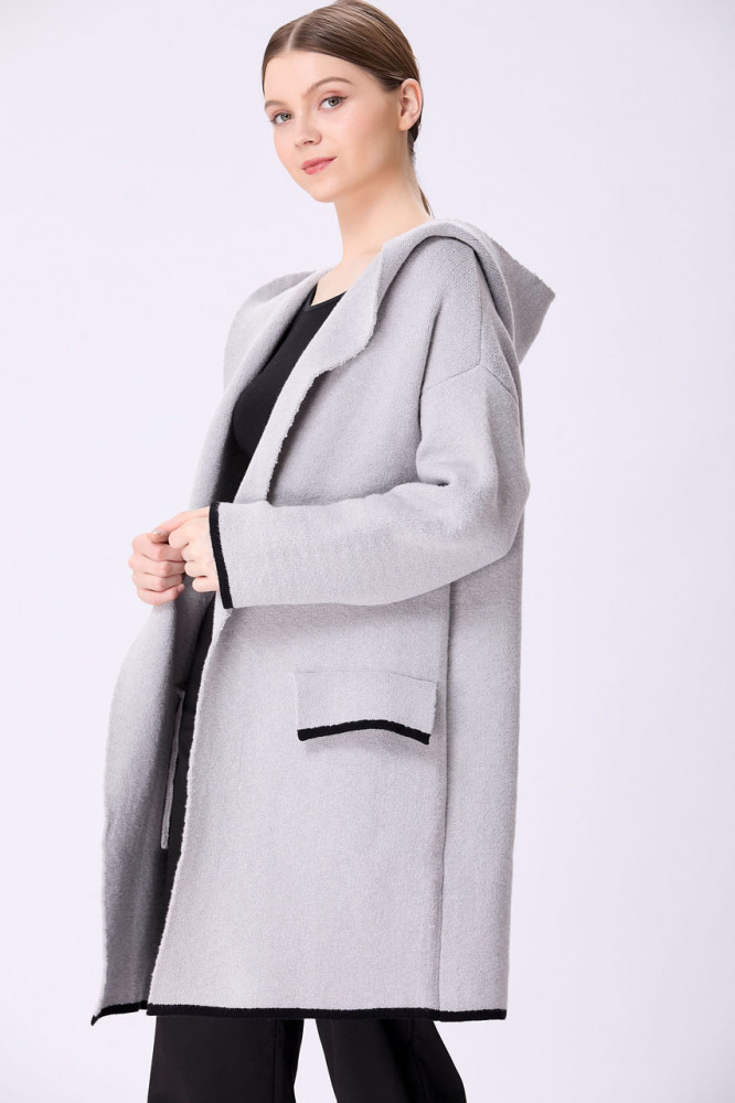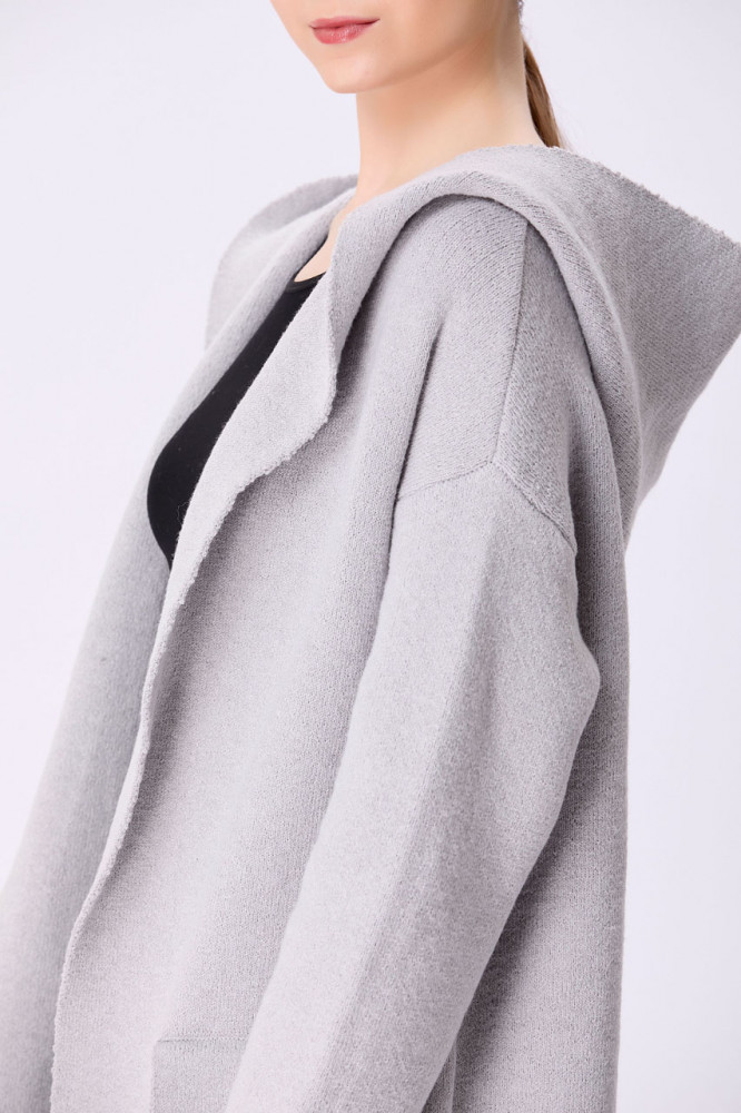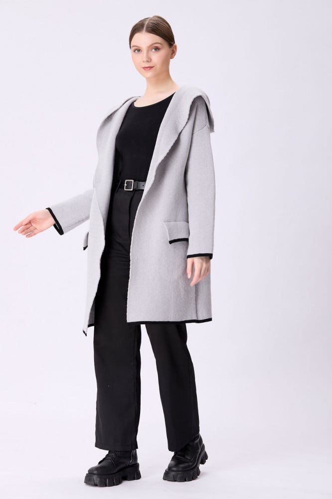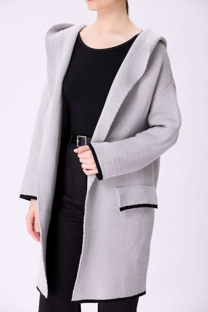 كارديغان رصاصي فاتح بقبعة وجيوب