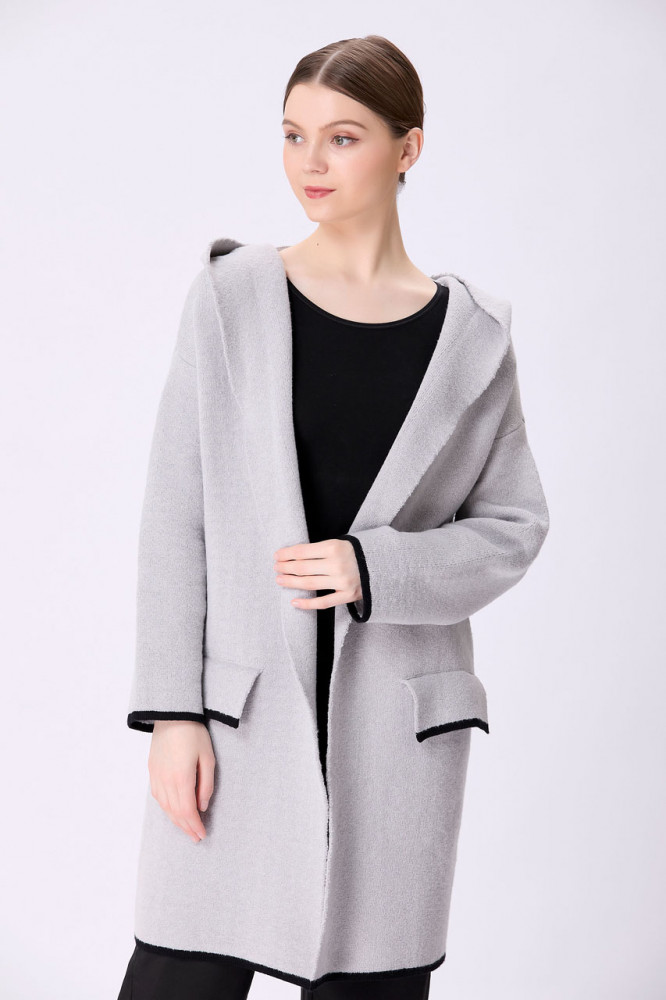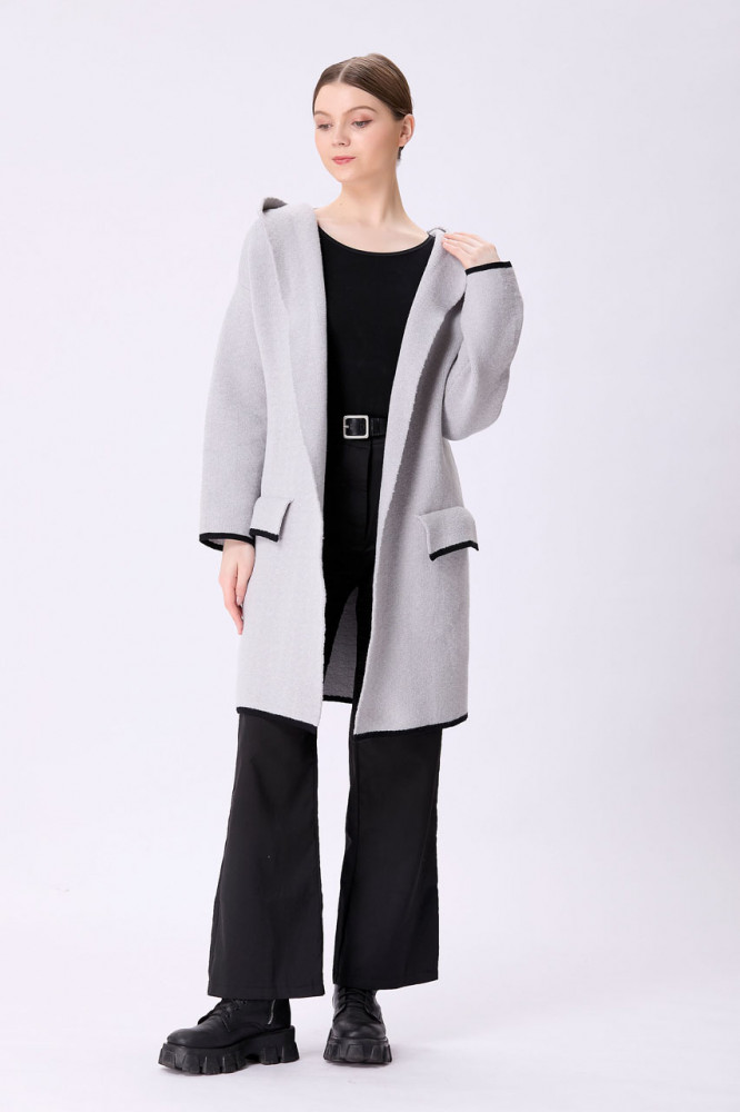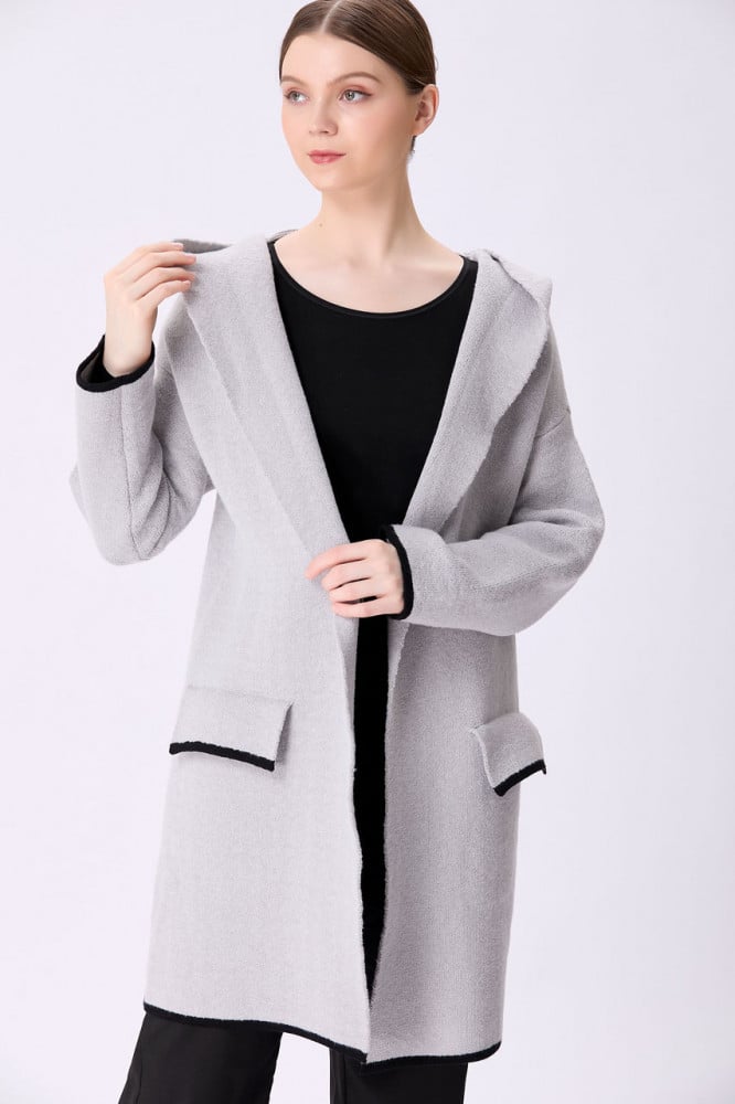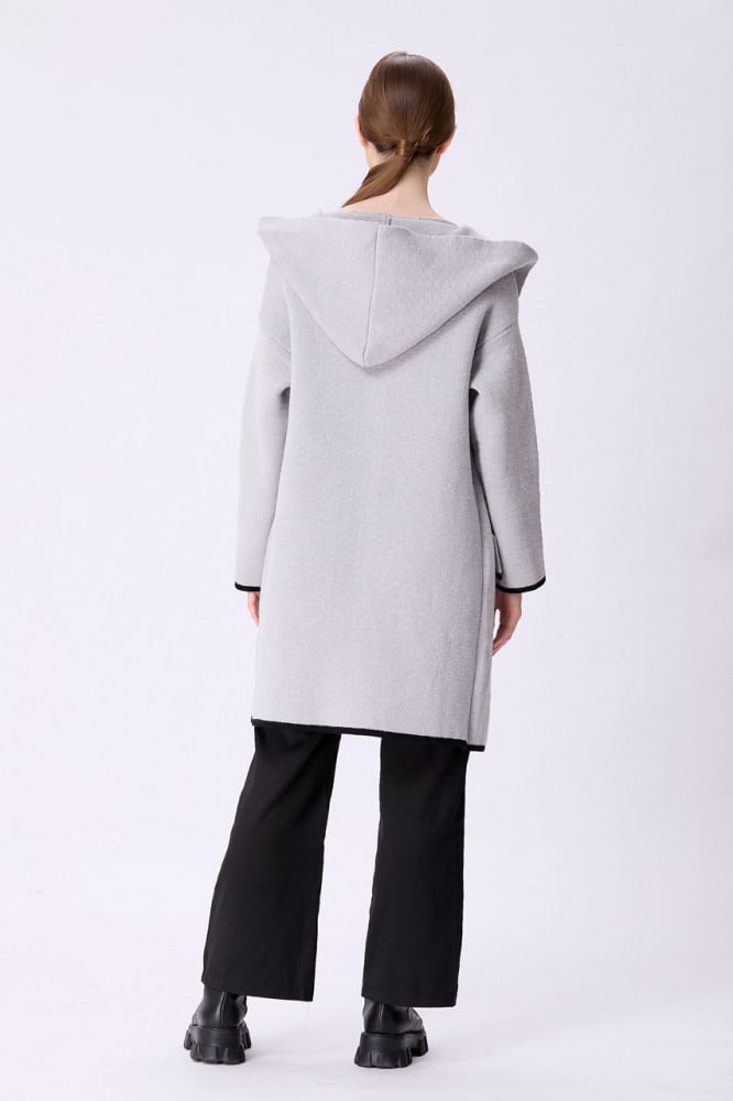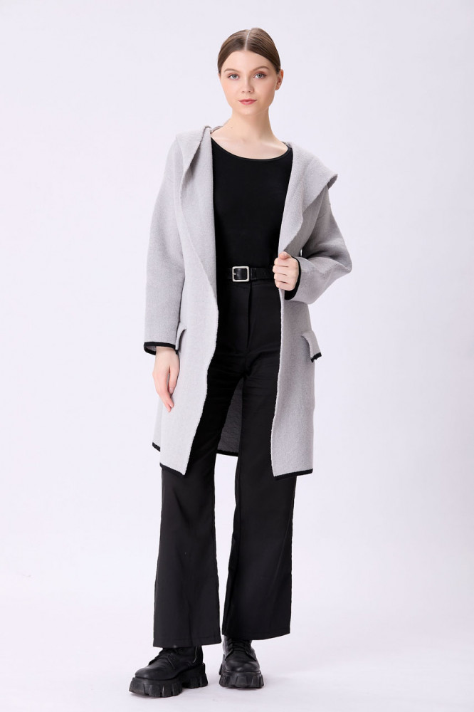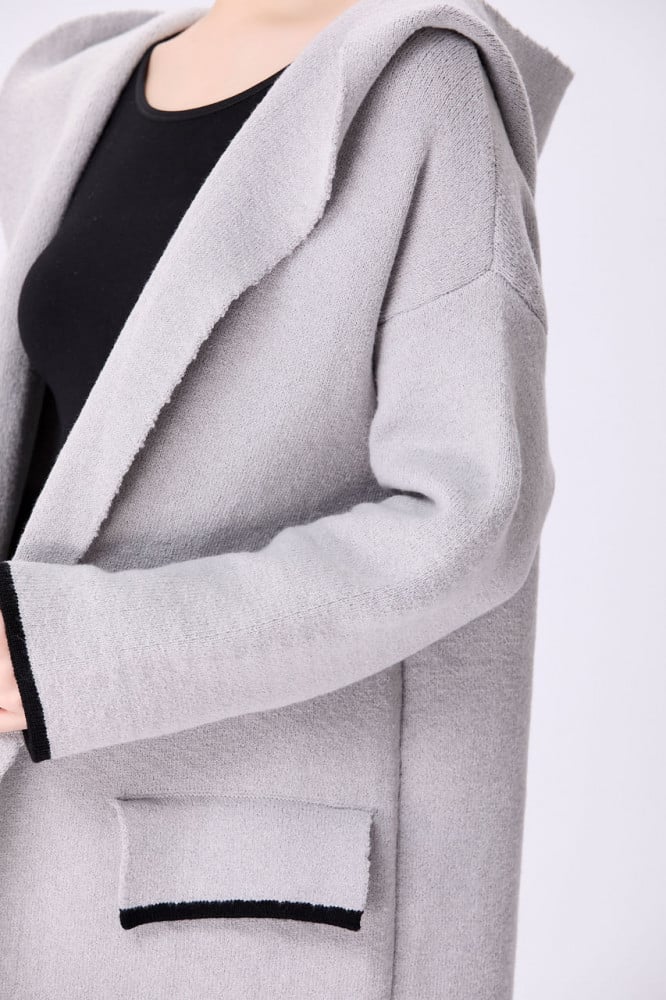 كارديغان رصاصي فاتح بقبعة وجيوب