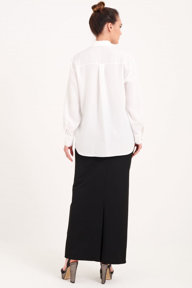بلوزة شيفون اوف وايت بتصميم اسود مميز كم طويل